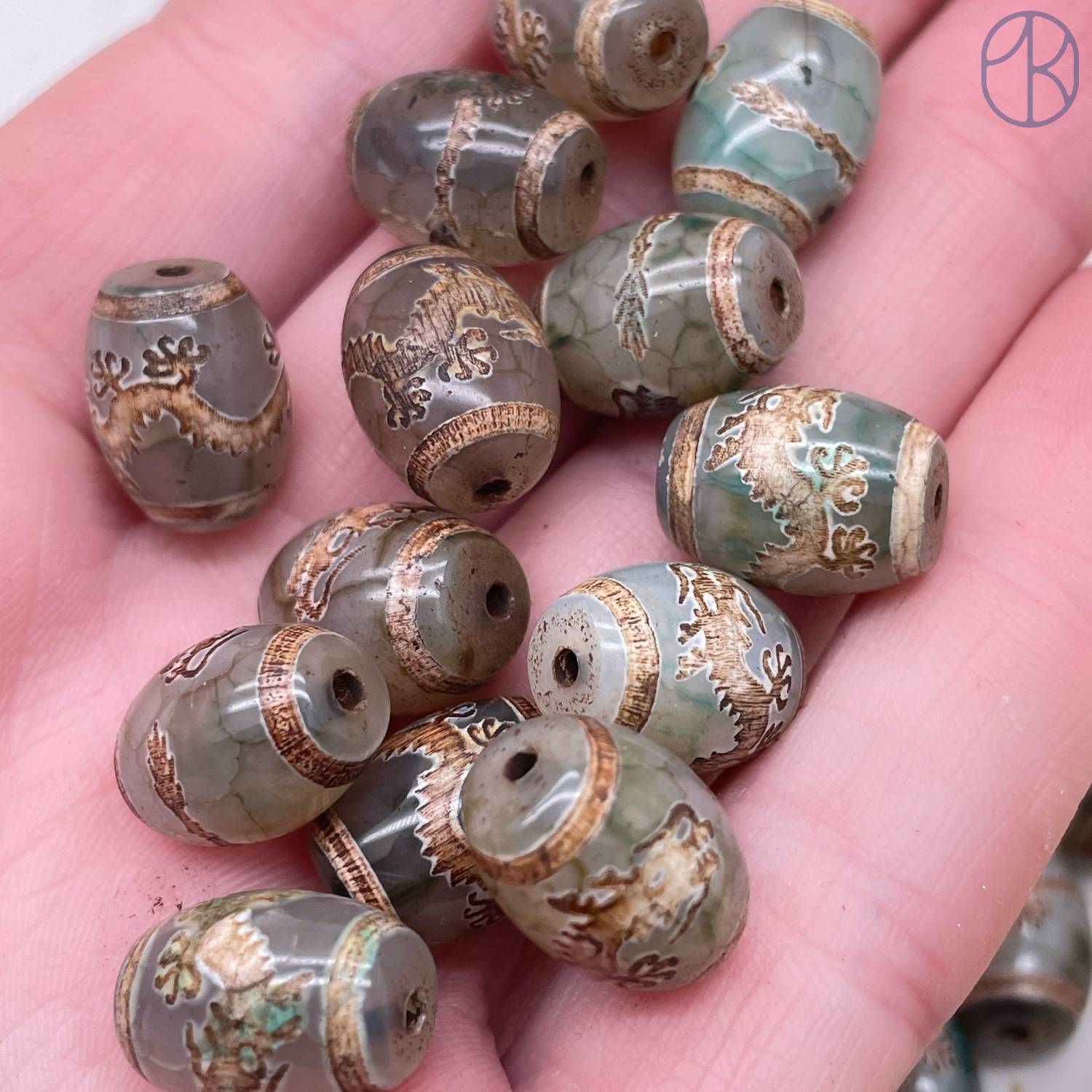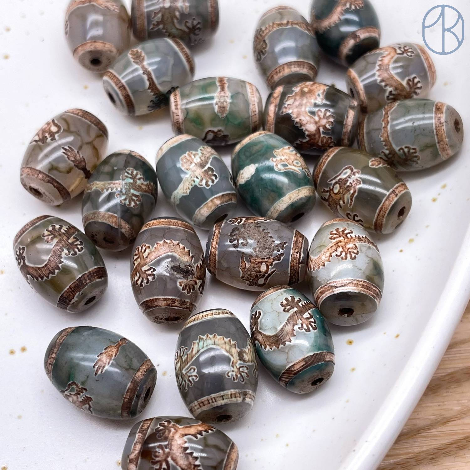 Бусина Дзи Дракон серо-зеленый бочонок уп. 5 шт 14х10 мм
