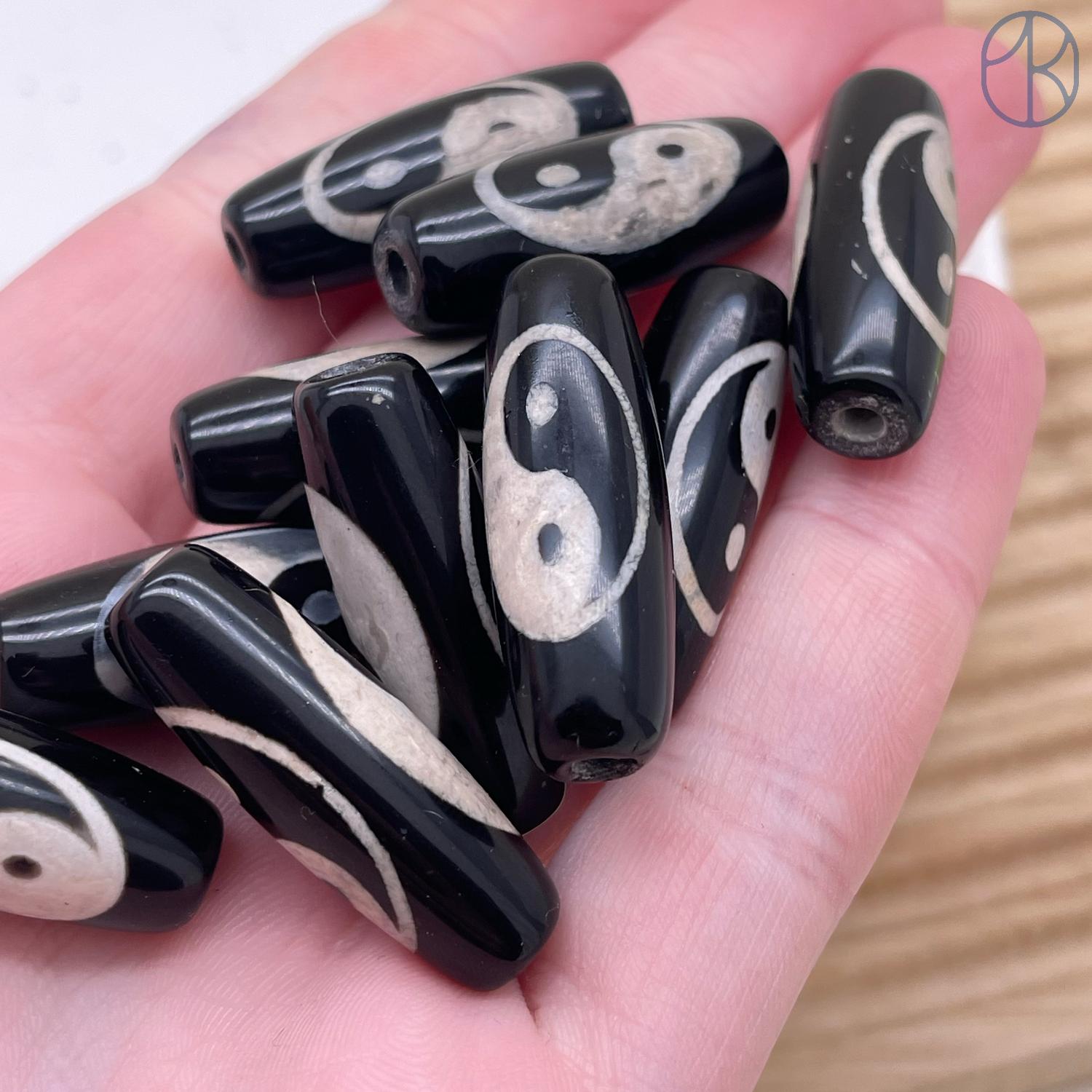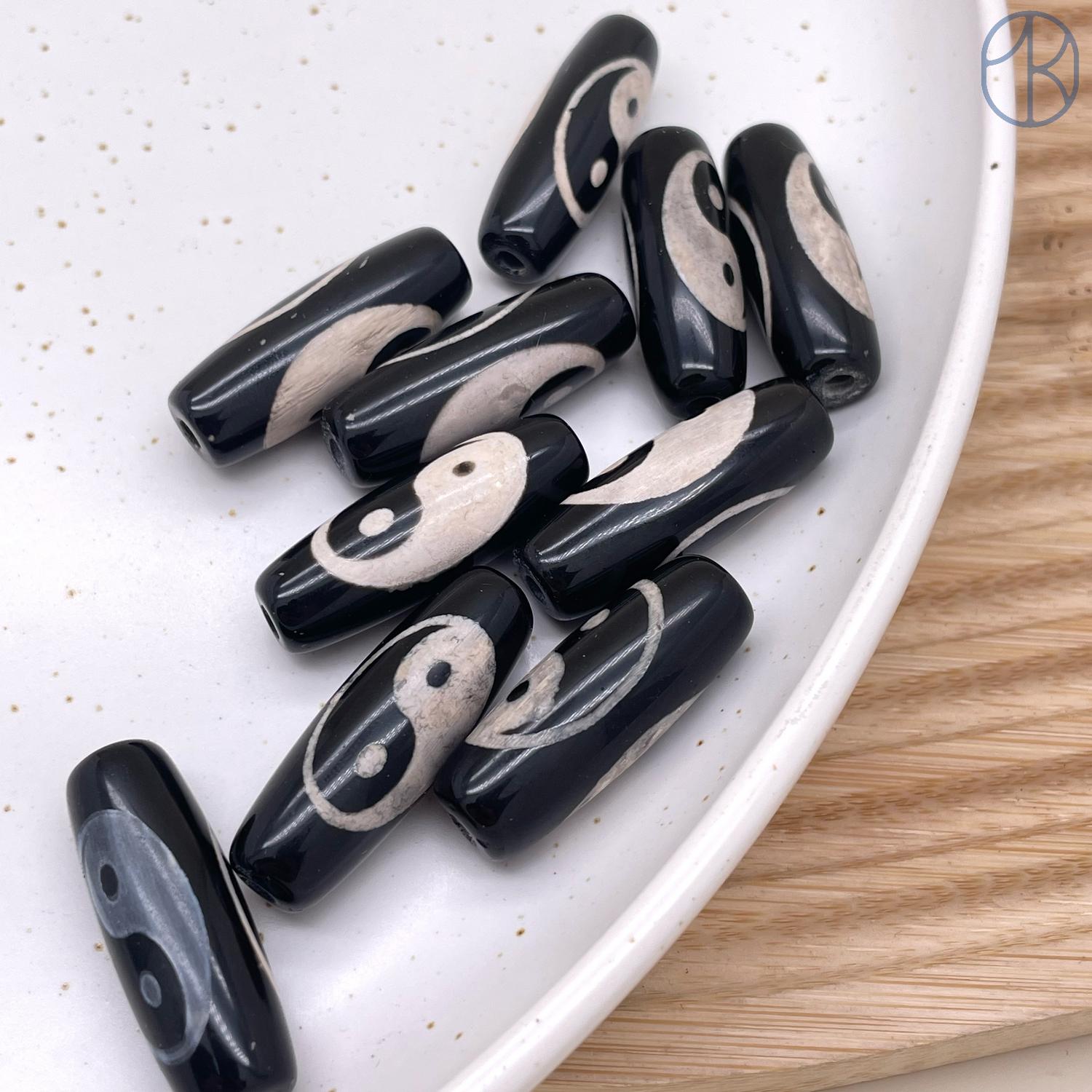 Бусина Дзи Инь-Янь черно-белый бочонок 30х11 мм