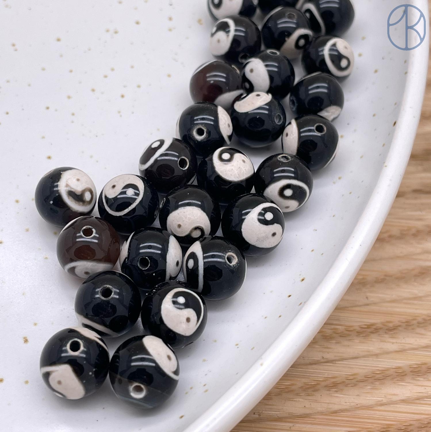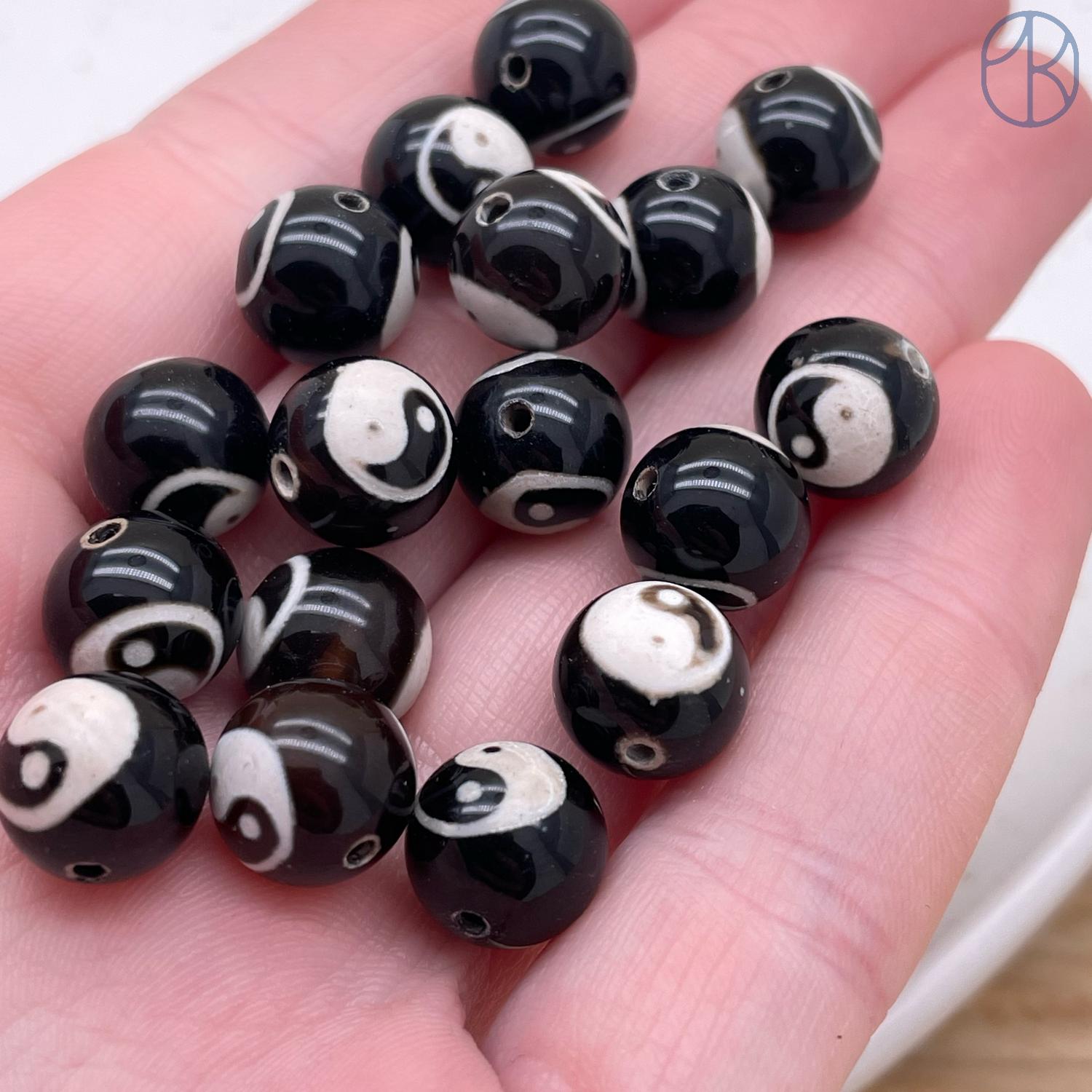 Бусина Дзи Инь-Янь черно-белый шар уп. 5шт 10 мм