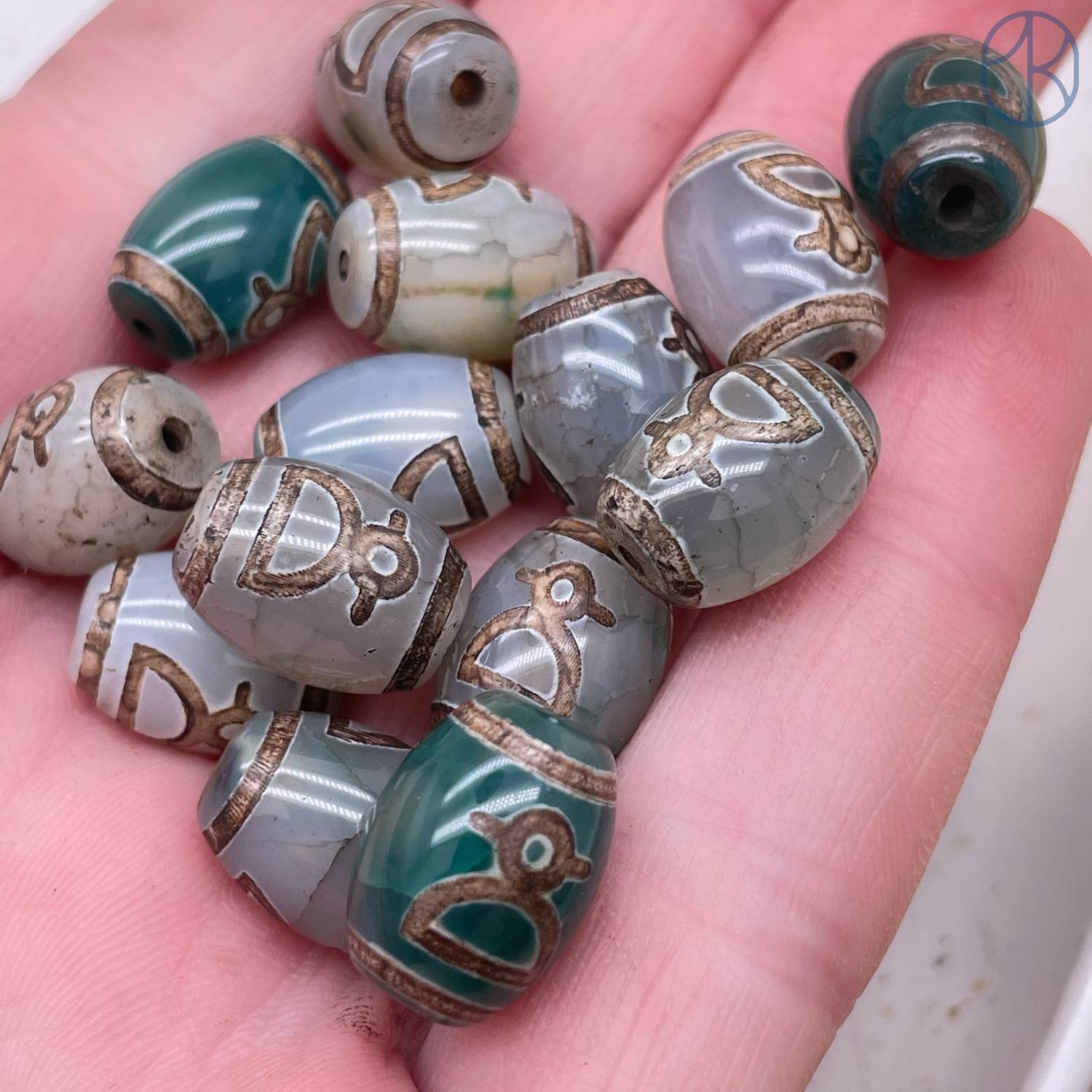 Бусина Дзи Кубера серо-зеленый бочонок уп. 5 шт 14х10 мм