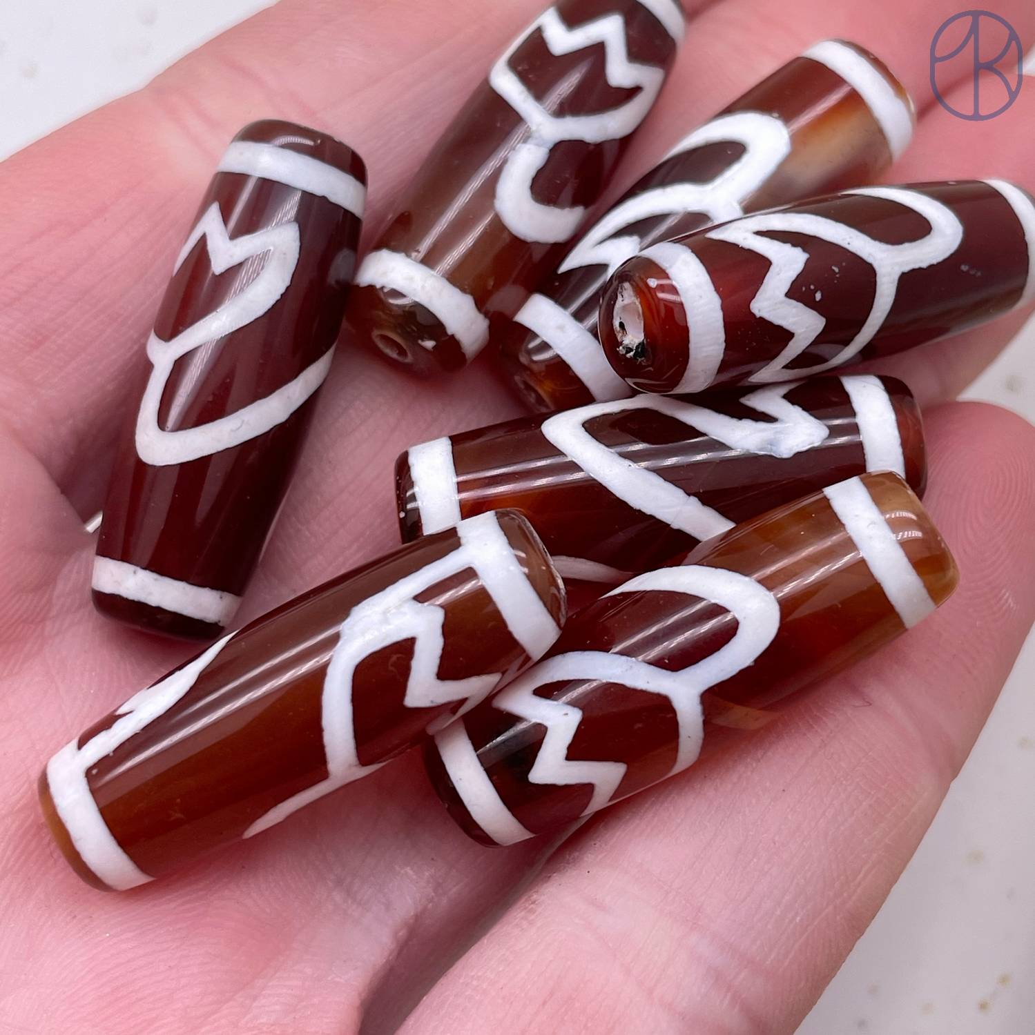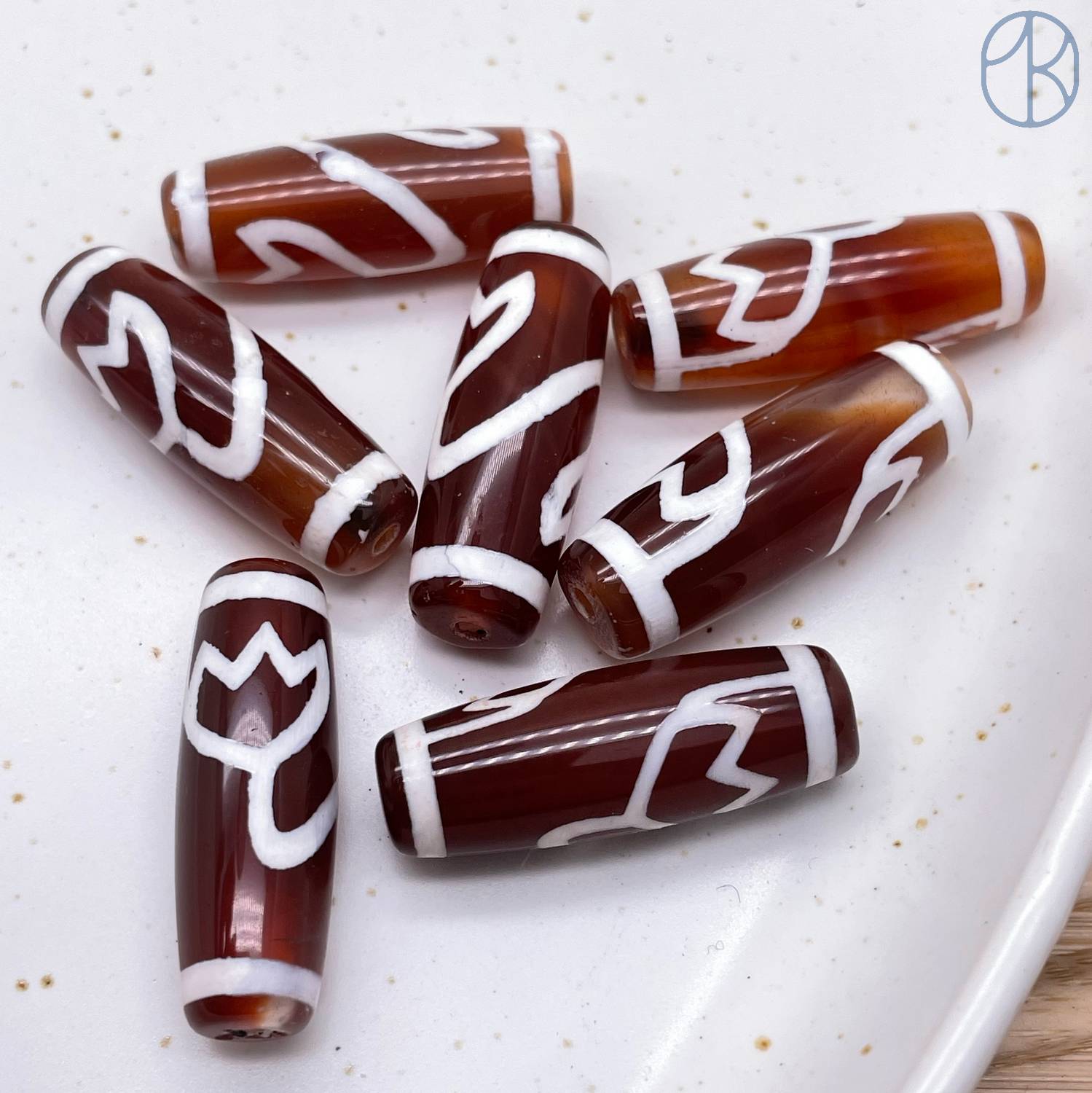 Бусина Дзи Лотос коричнево-белый бочонок 30х11 мм
