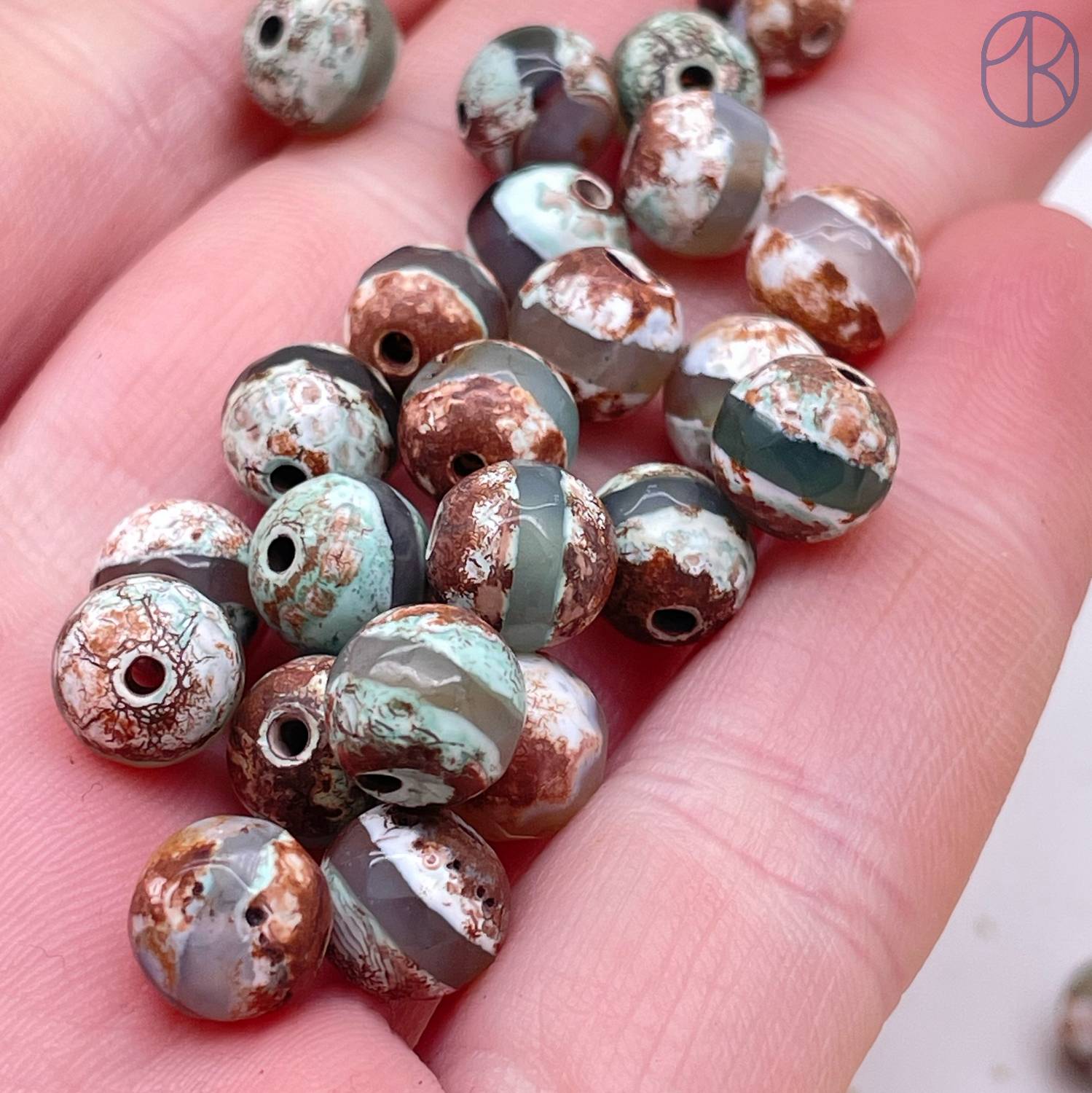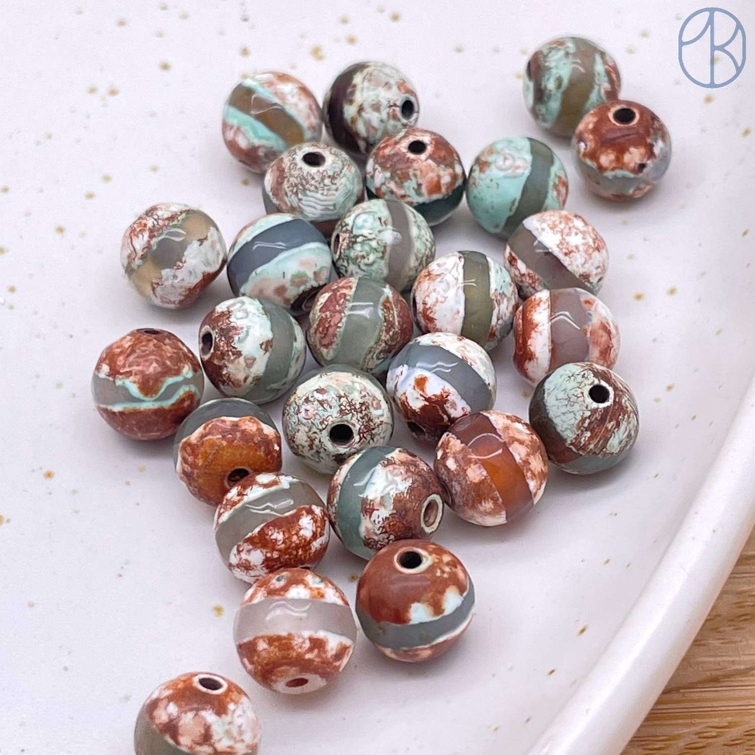Бусина Дзи Медицина коричнево-зеленый шар огранка уп.5шт 8 мм