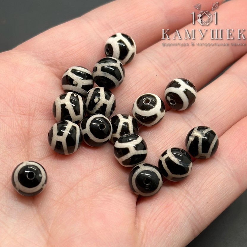 Бусина Дзи Черепаха черно-белый шар уп. 5шт 10 мм
