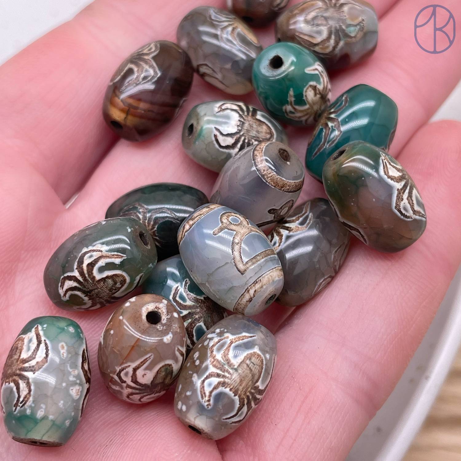 Бусина Дзи Паук серо-зеленый бочонок уп. 5 шт 14х10 мм
