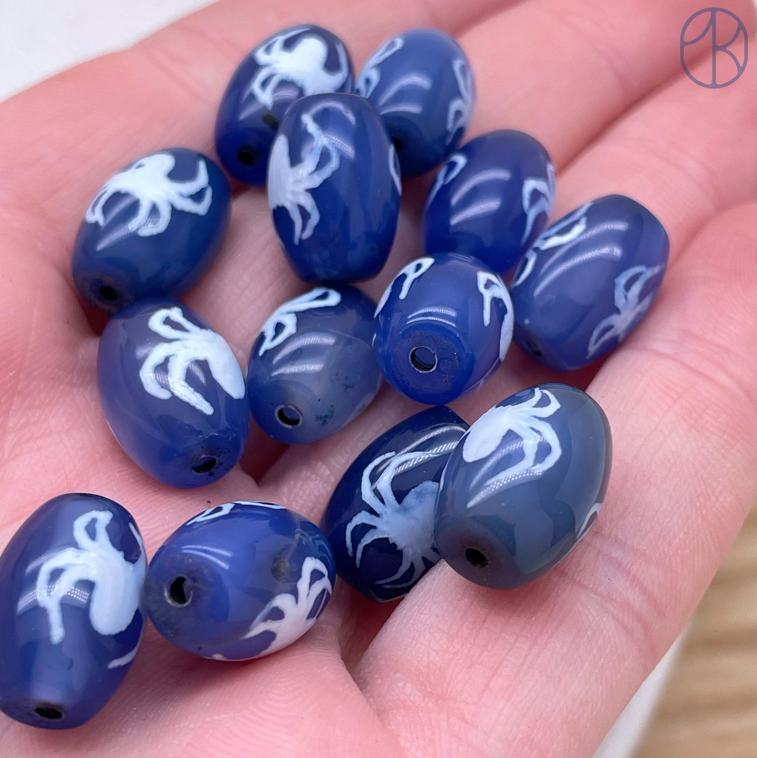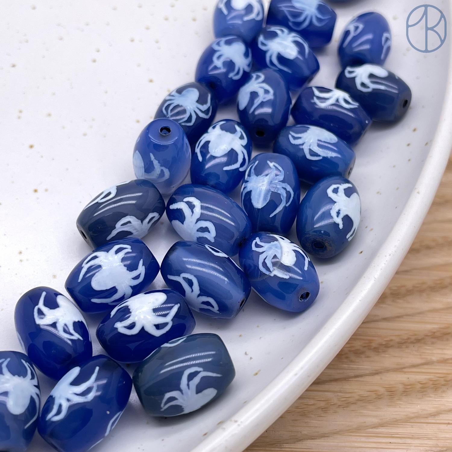 Бусина Дзи Паук сине-белый бочонок уп. 5шт 14х10 мм