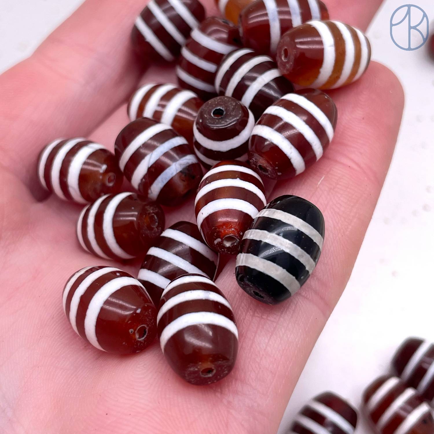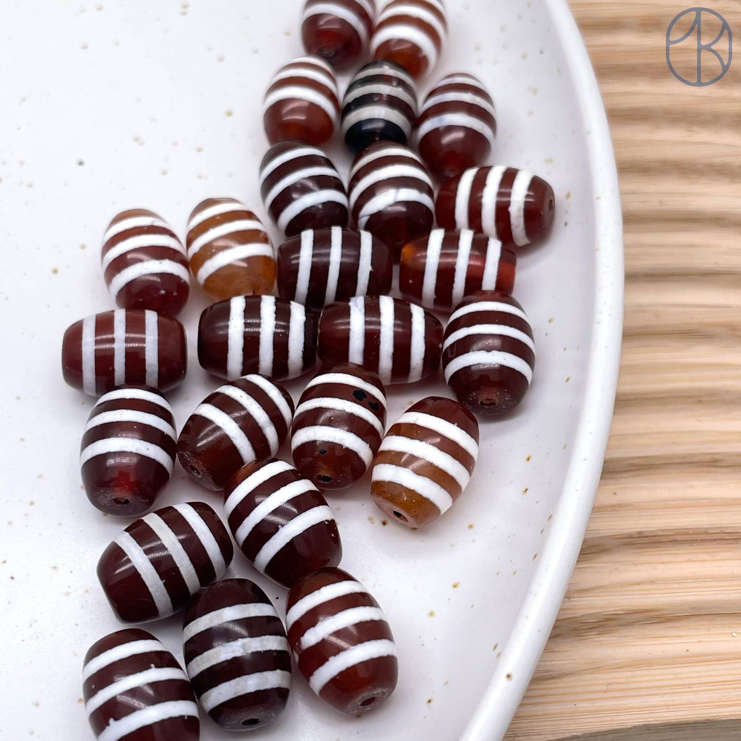 Бусина Дзи Полосатая коричнево-белый бочонок уп. 5 шт 14х10 мм