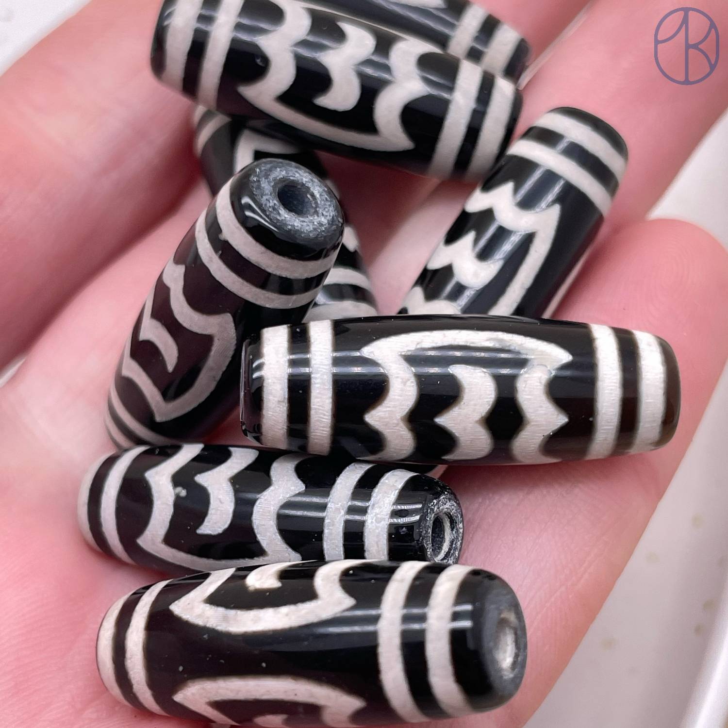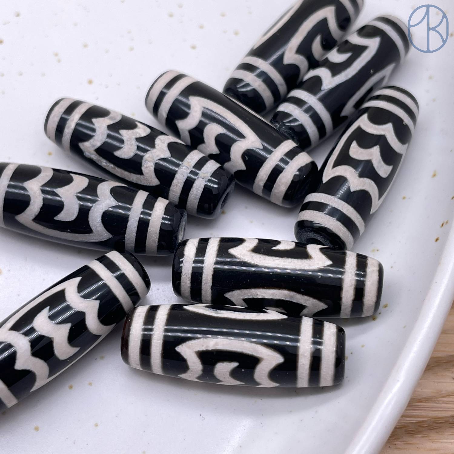 Бусина Дзи Птицы черно-белый бочонок 30х11 мм