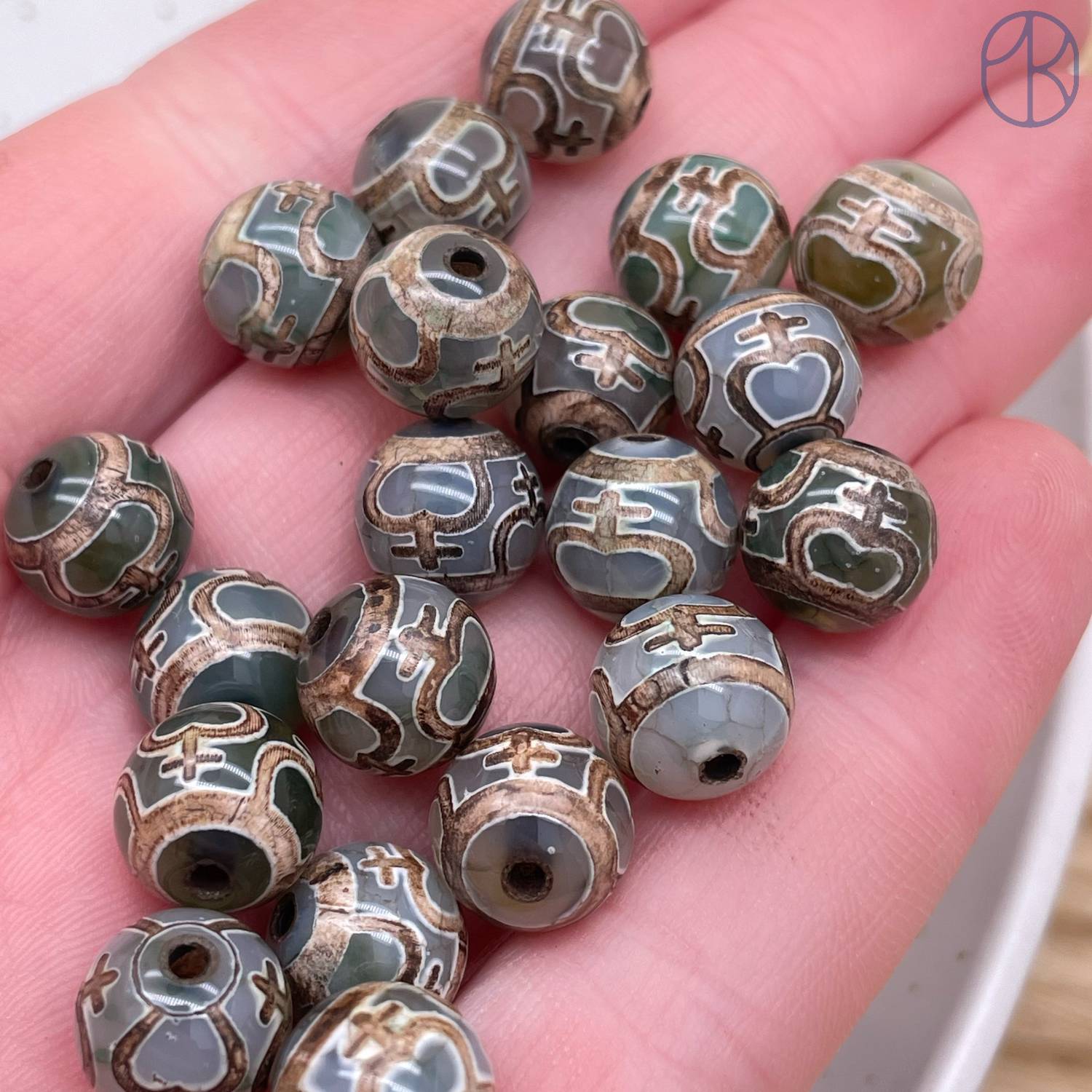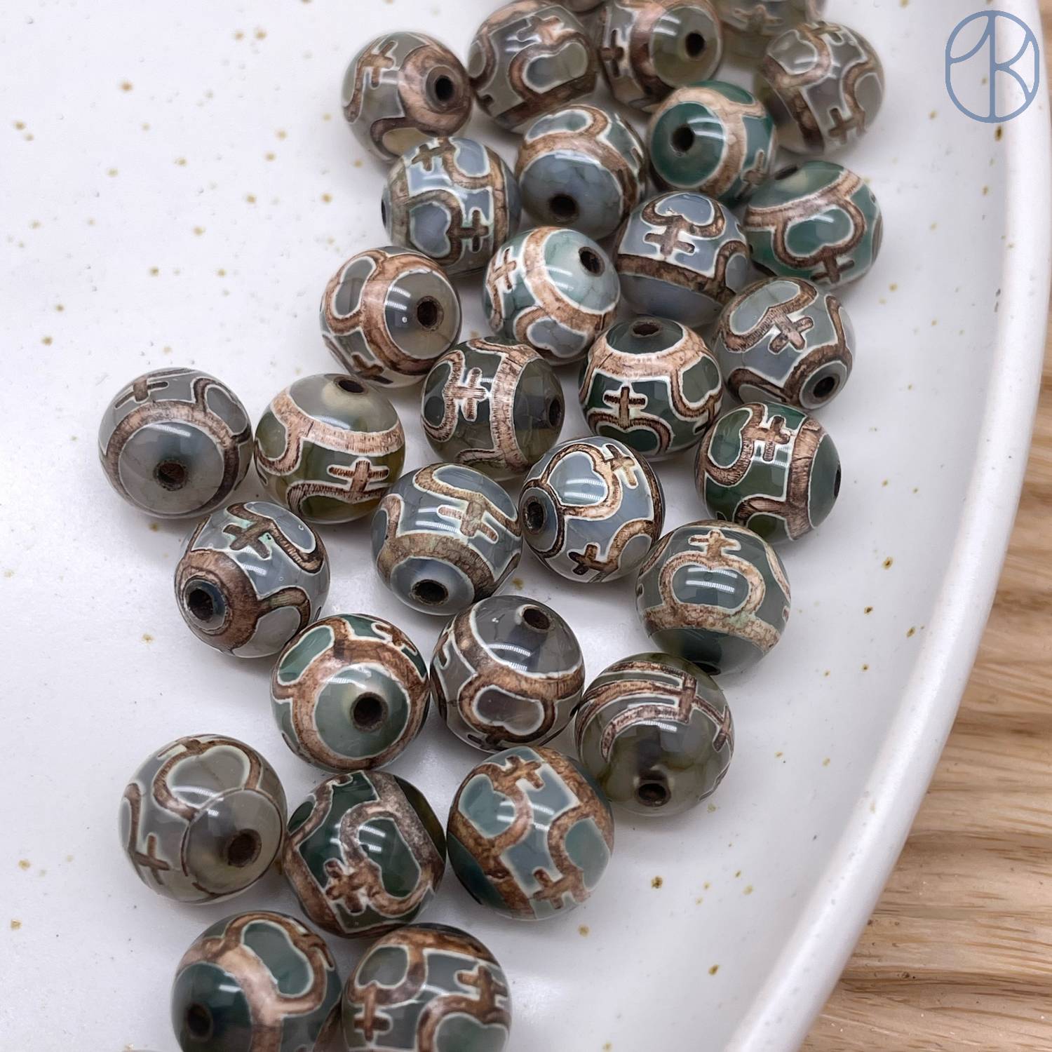 Бусина Дзи Сосуд изобилия серо-зеленый бочонок шар уп. 5шт 10 мм