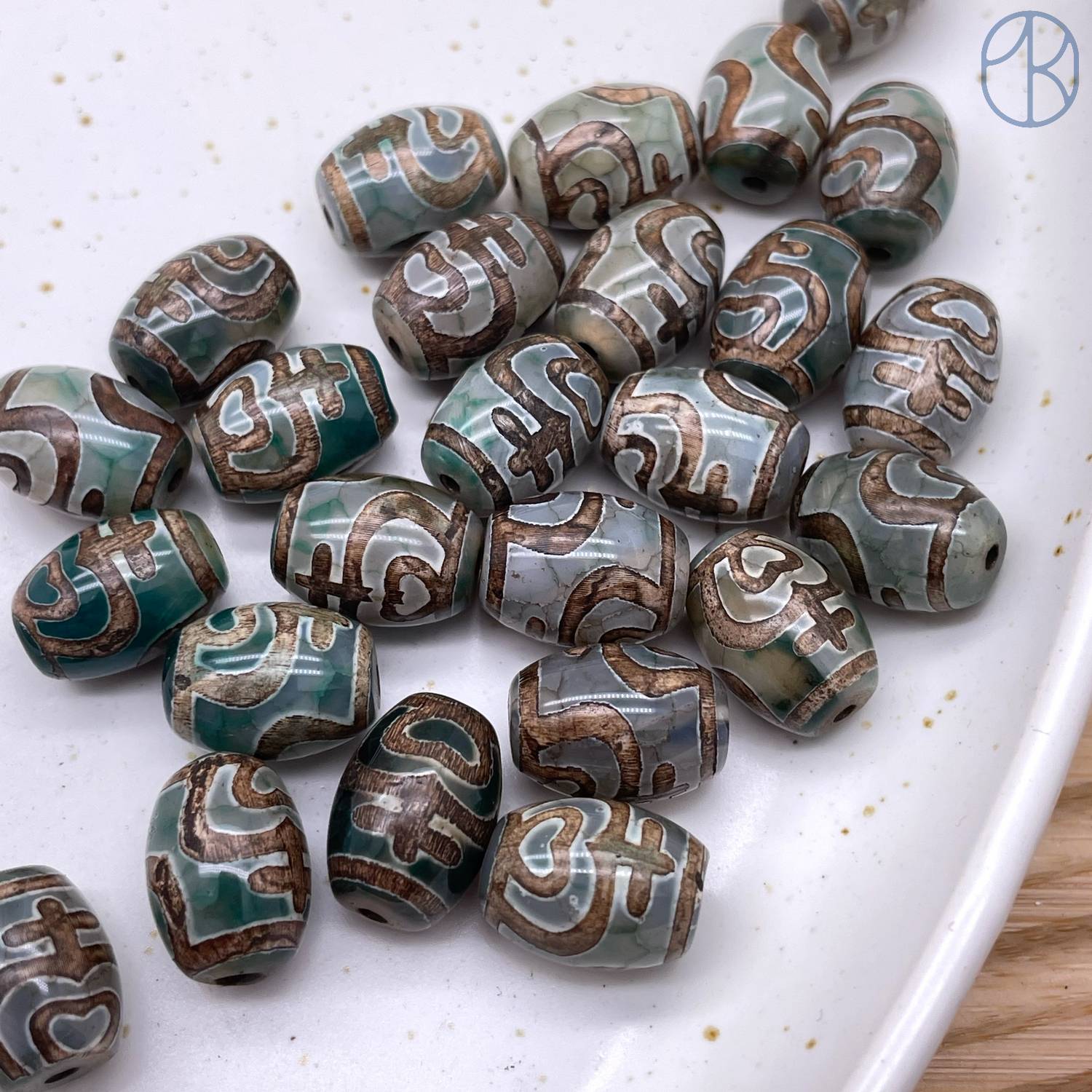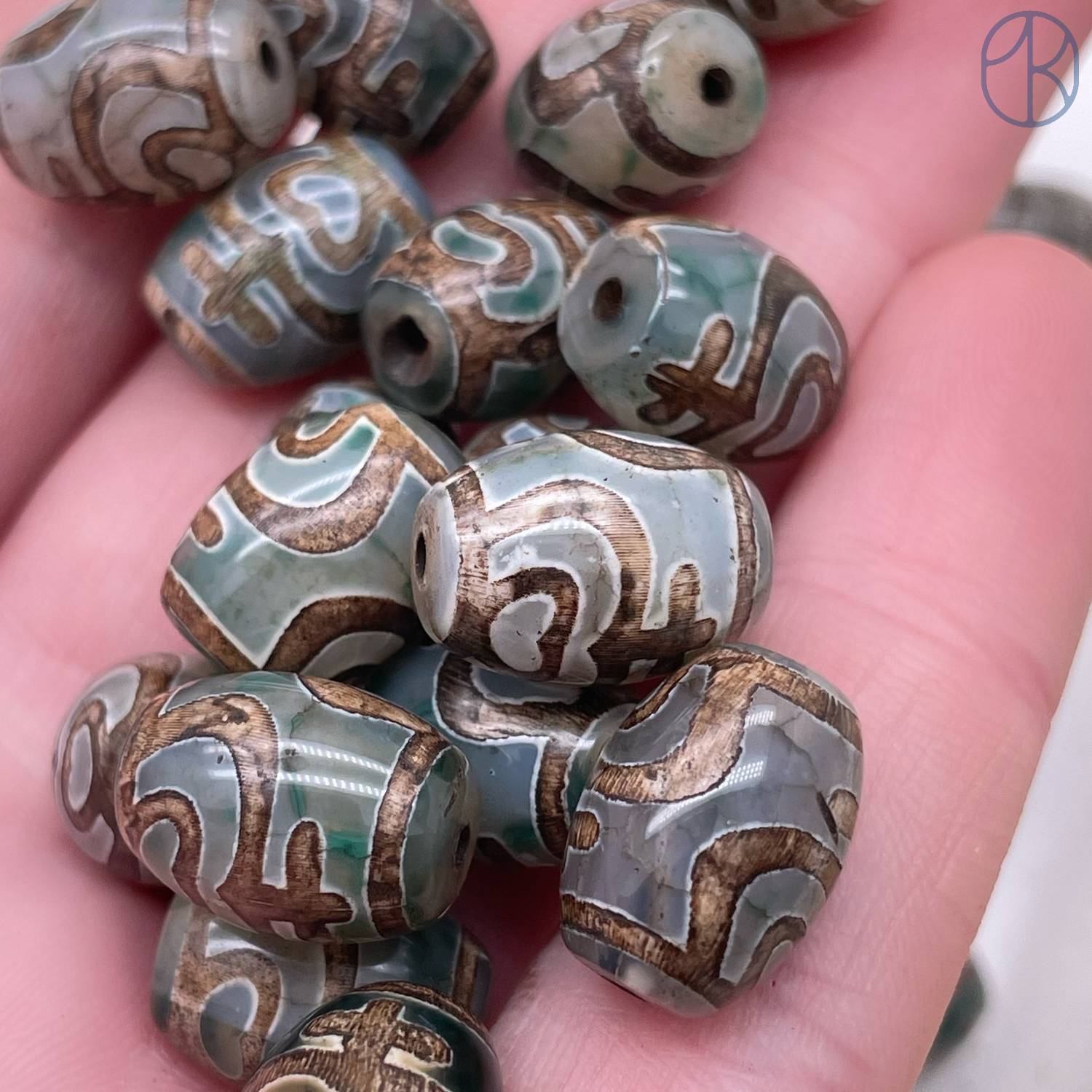 Бусина Дзи Сосуд изобилия серо-зеленый бочонок уп.5 шт 14х10 мм