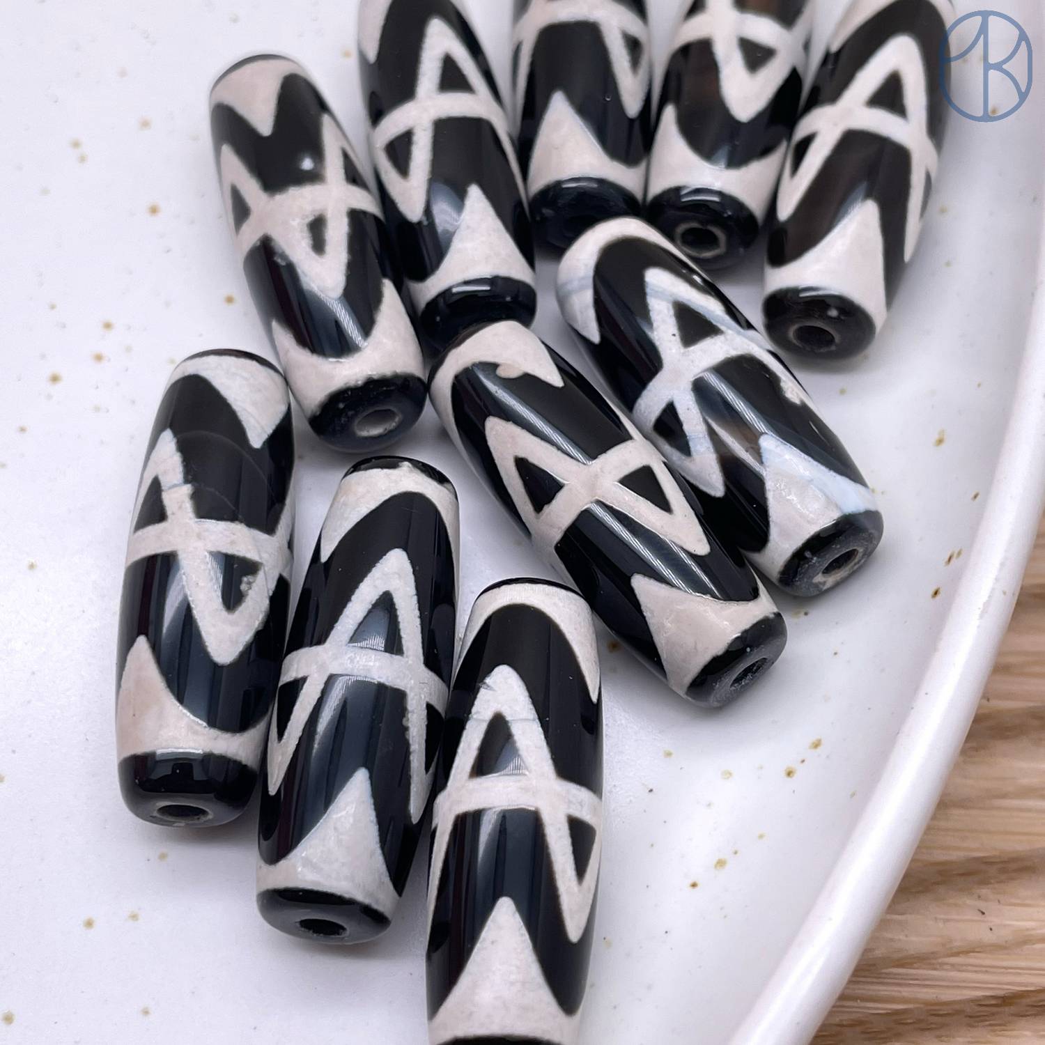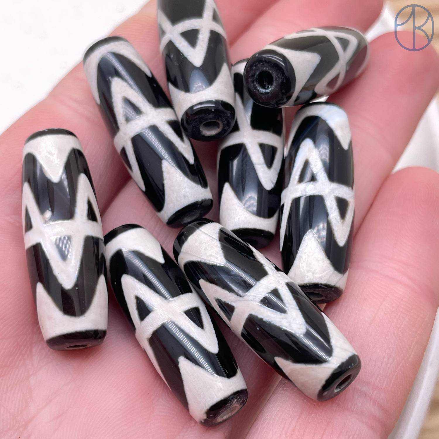 Бусина Дзи Волна черно-белый бочонок №1 30х10 мм