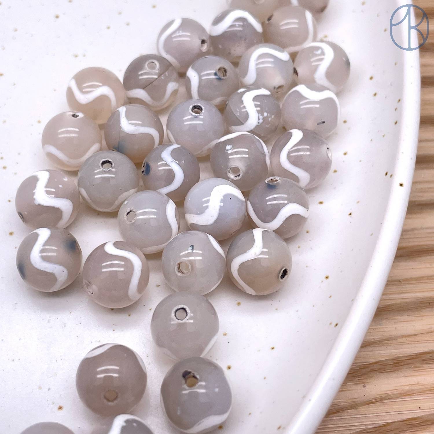 Бусина Дзи Волна серо-белый шар уп. 5шт 10 мм