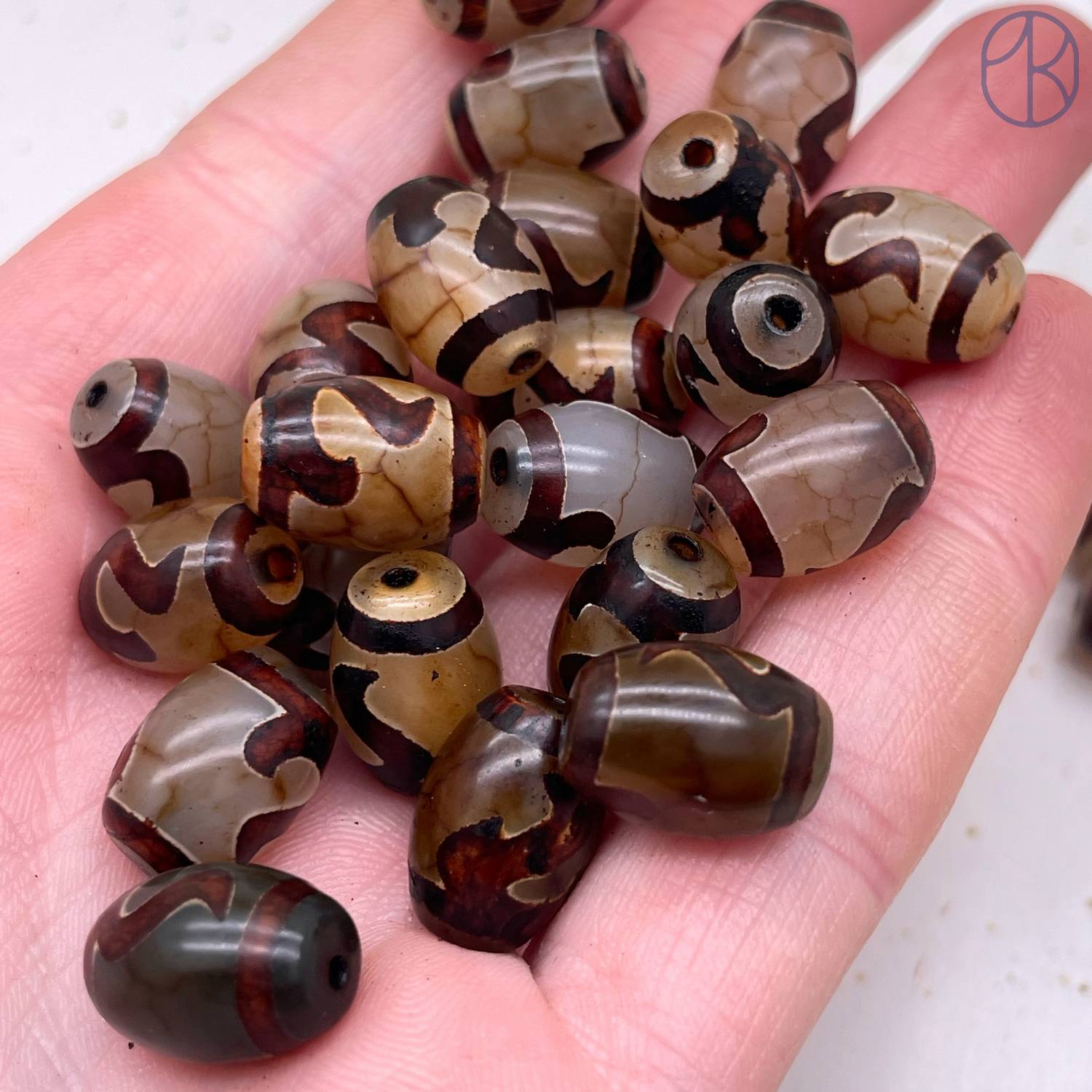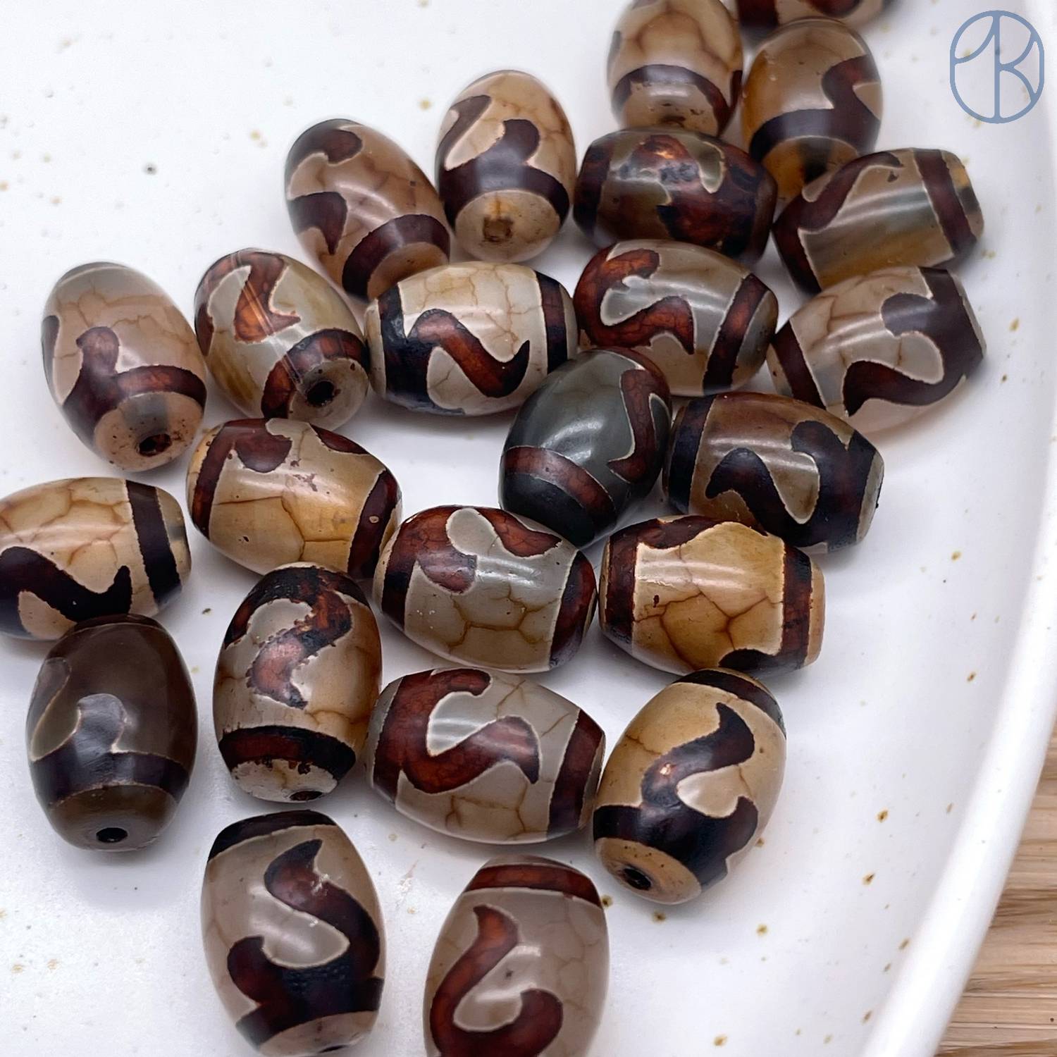 Бусина Дзи Золотой ключ серо-коричневый бочонок уп. 5шт 14х10 мм