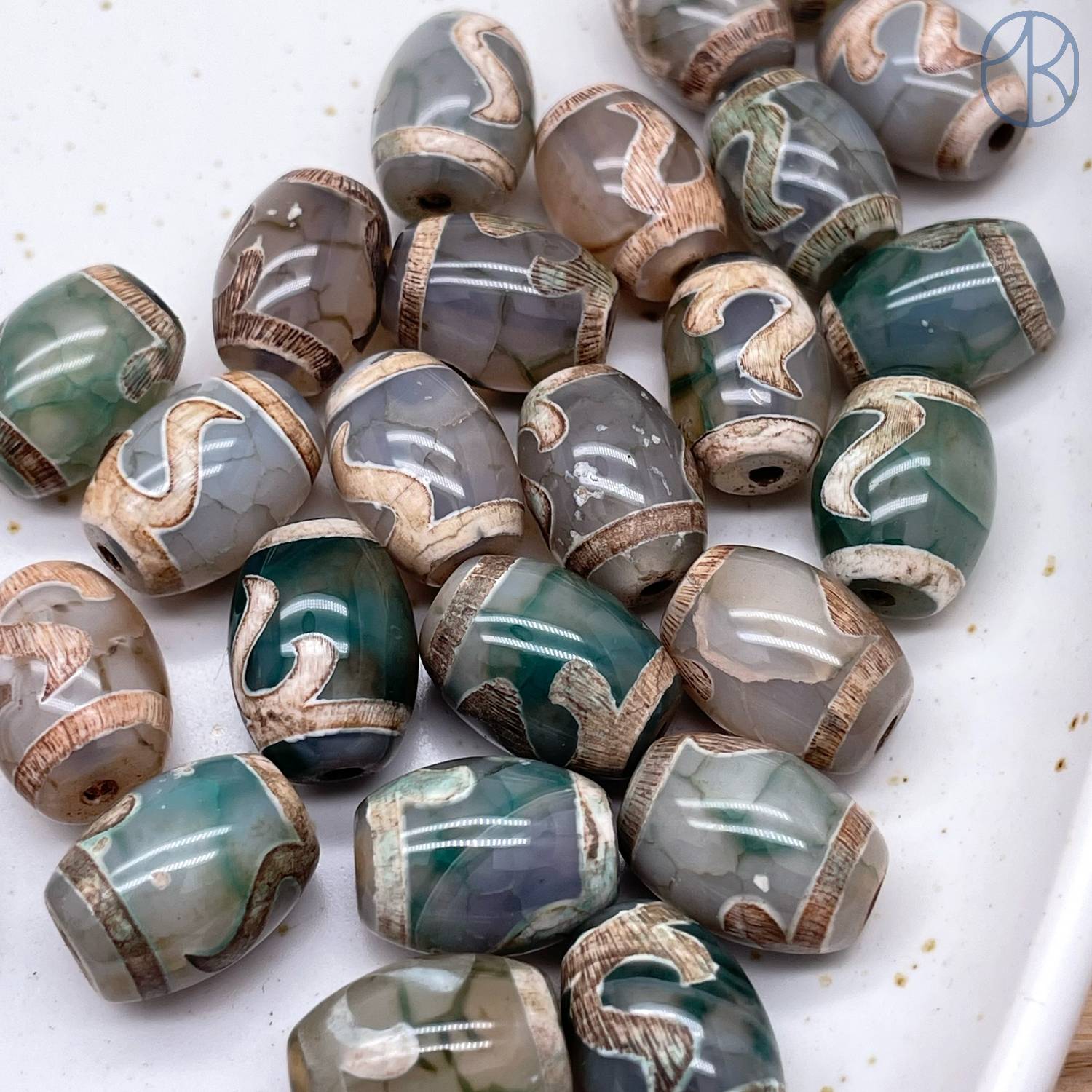 Бусина Дзи Золотой ключ серо-зеленый бочонок уп. 5шт 14х10 мм