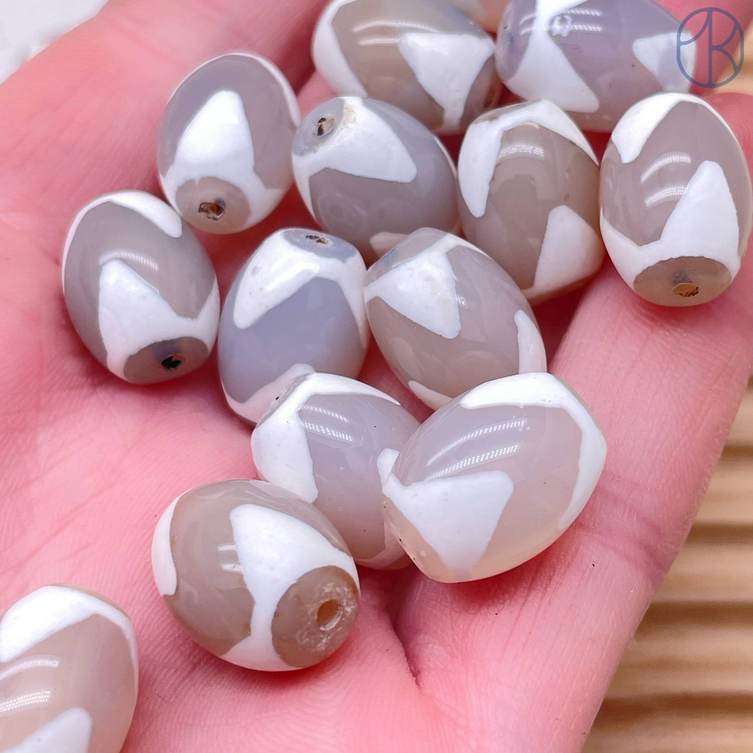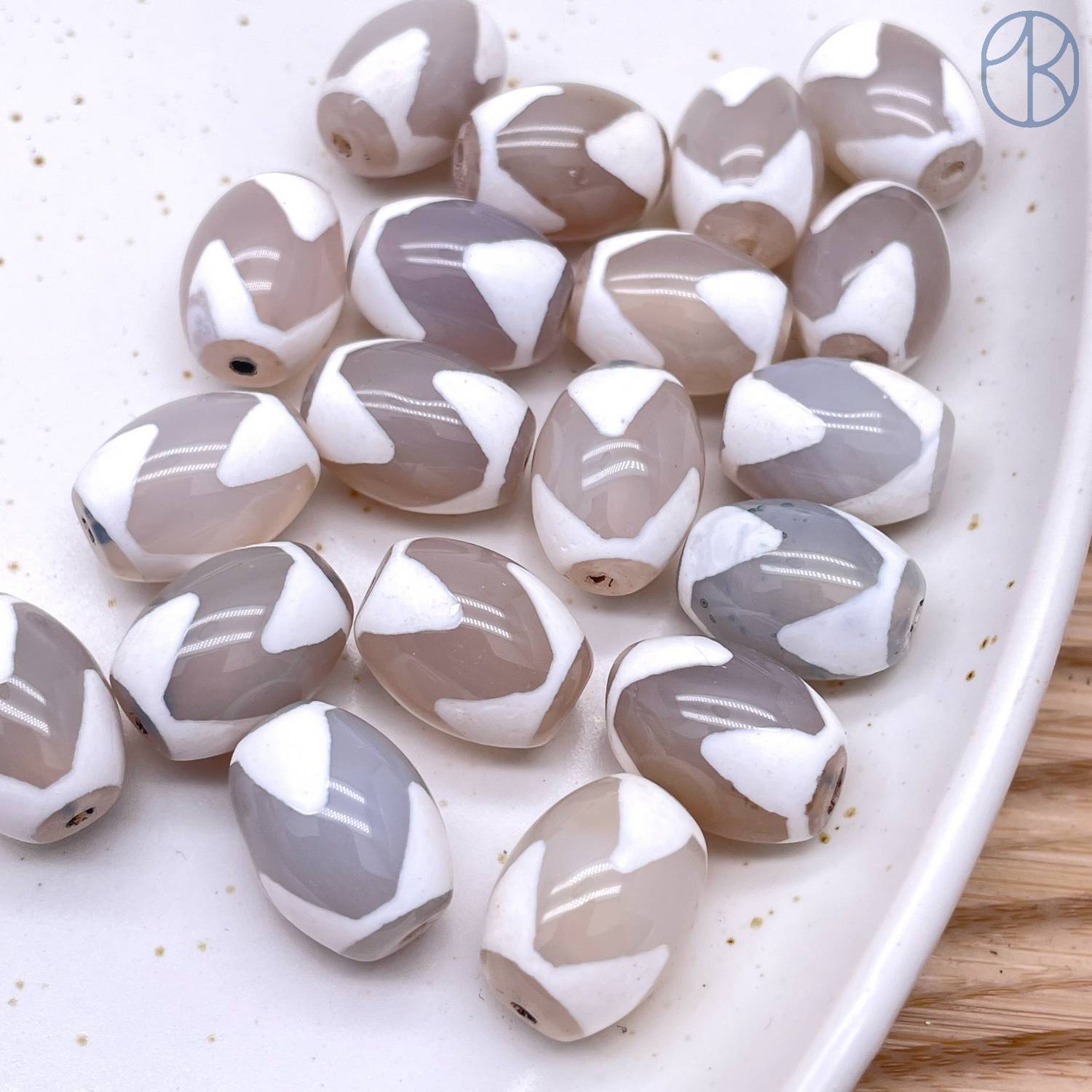 Бусина Лошадь серо-белый бочонок уп. 5шт 16х12 мм