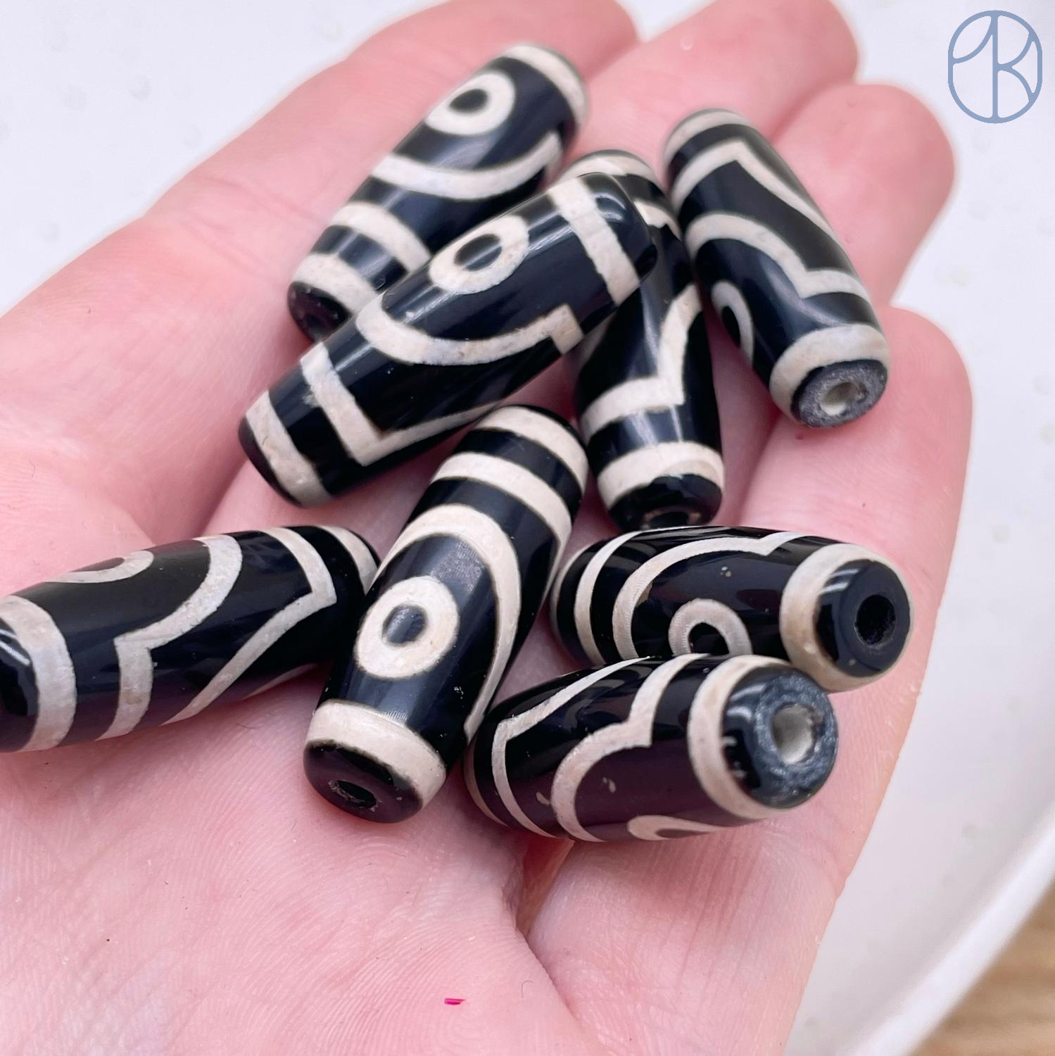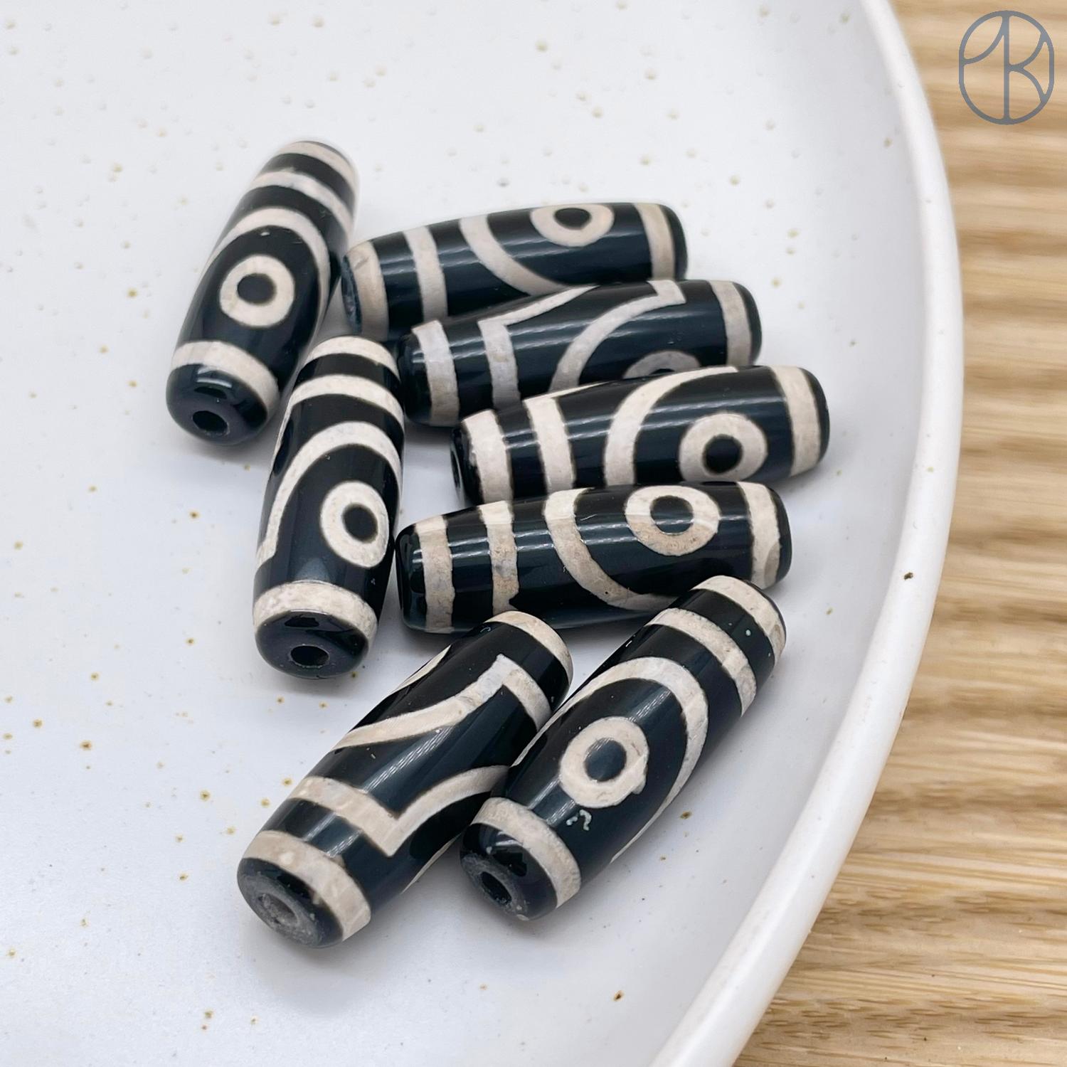 Бусина Дзи 2 глаза черно-белый бочонок 30х11 мм