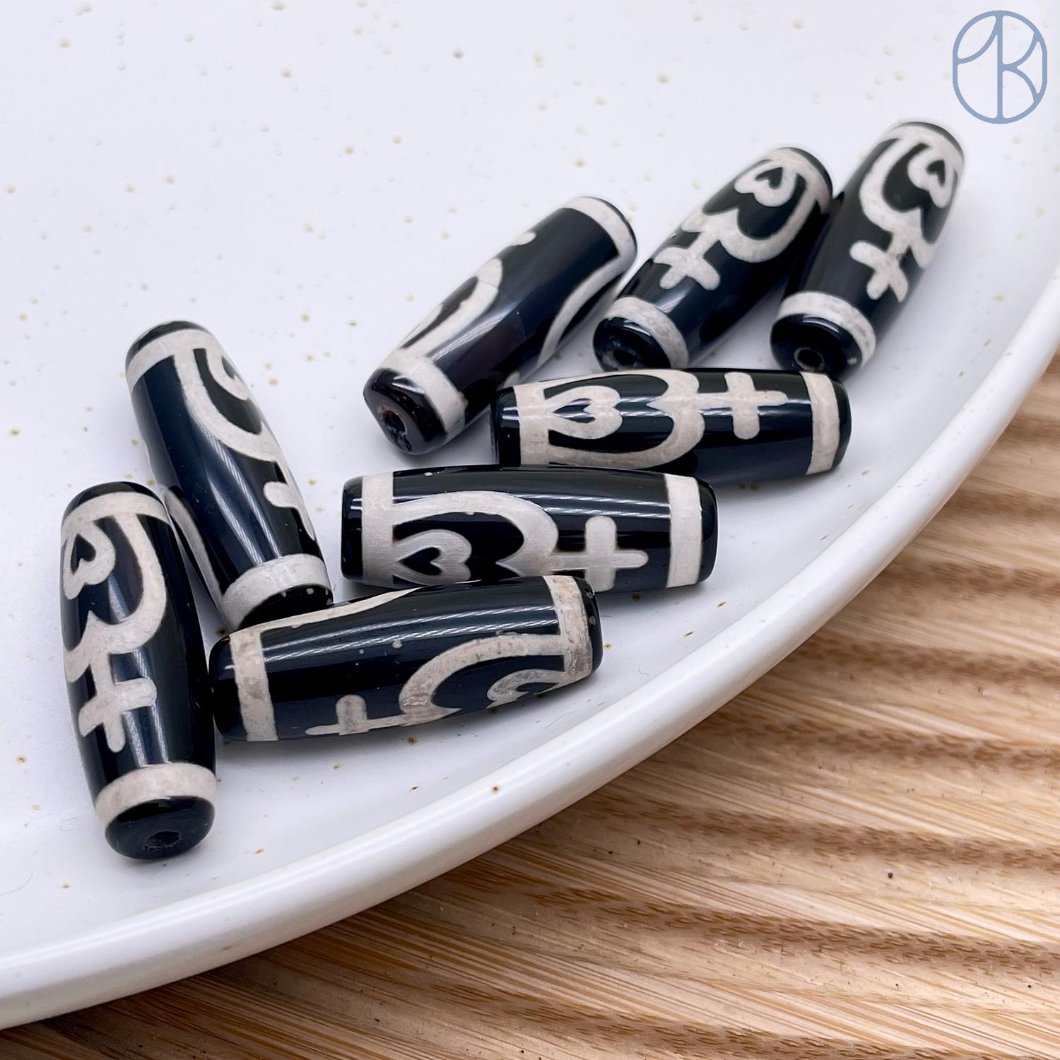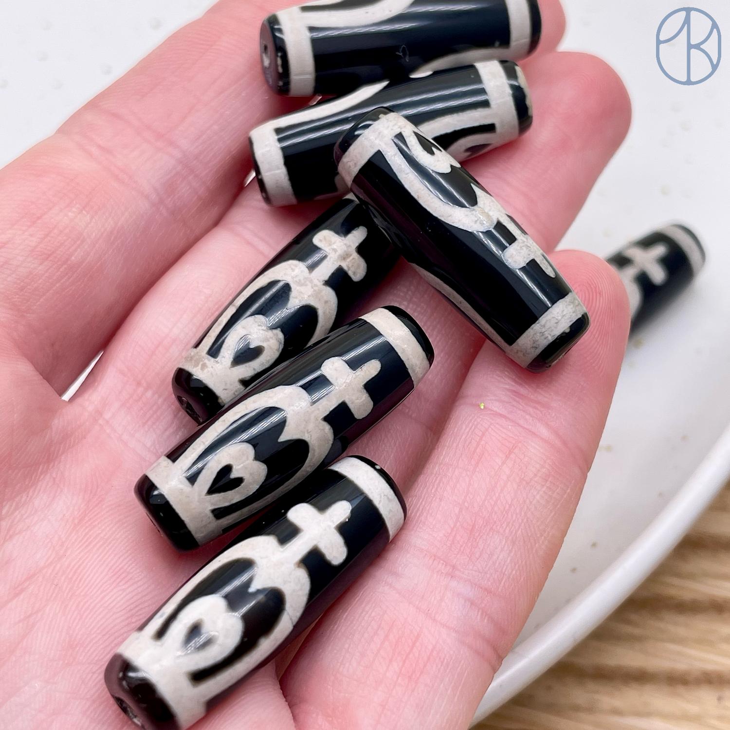 Бусина Дзи Нектарный Сосуд Изобилия черно-белый бочонок 30х11 мм