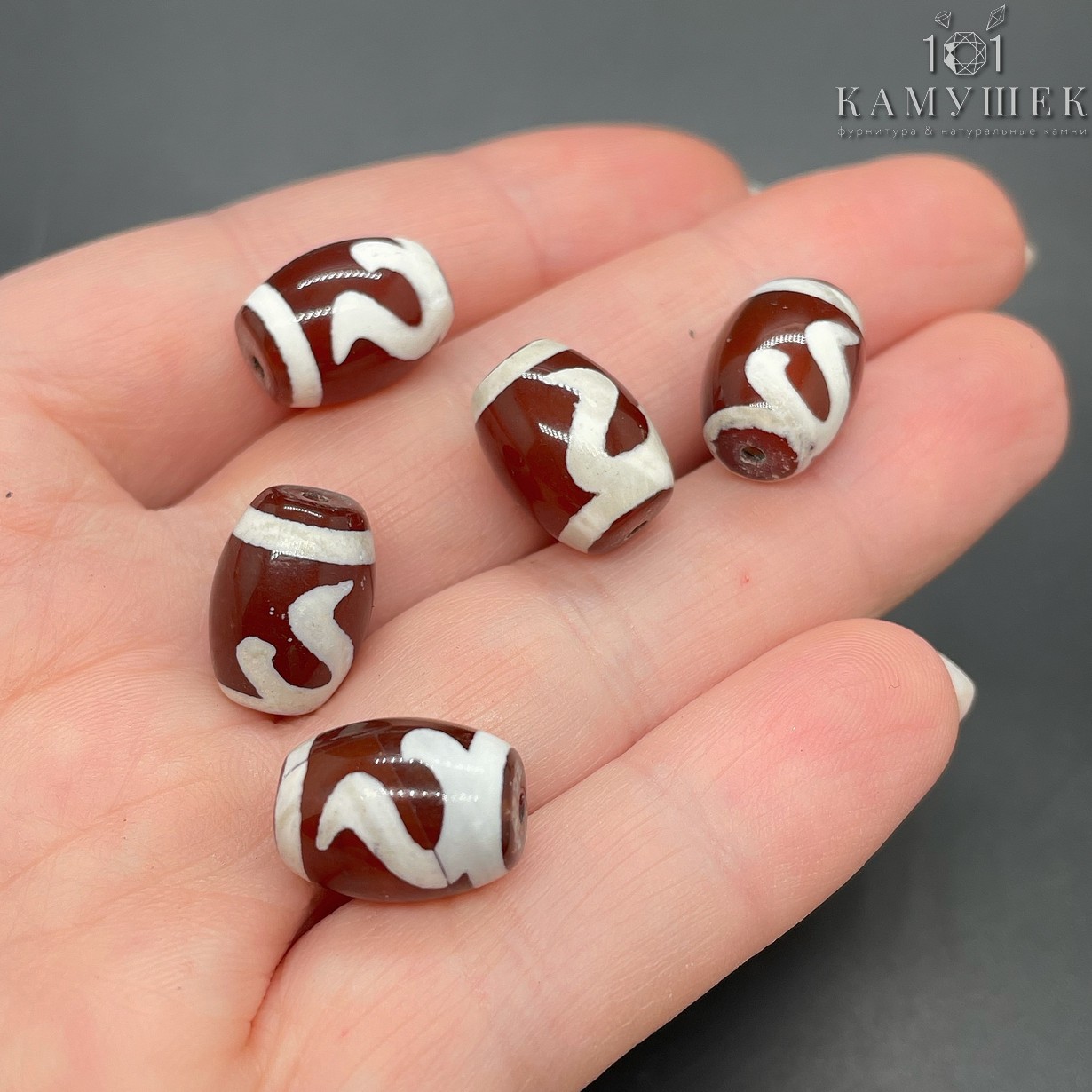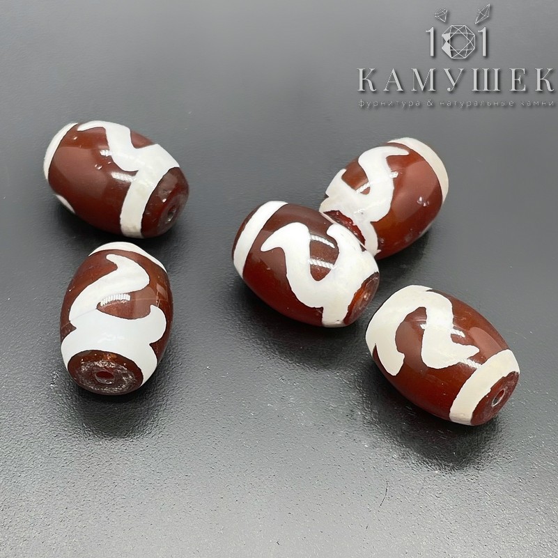 Бусина Дзи Золотой ключ коричнево-белый бочонок уп.5 шт 10х14 мм