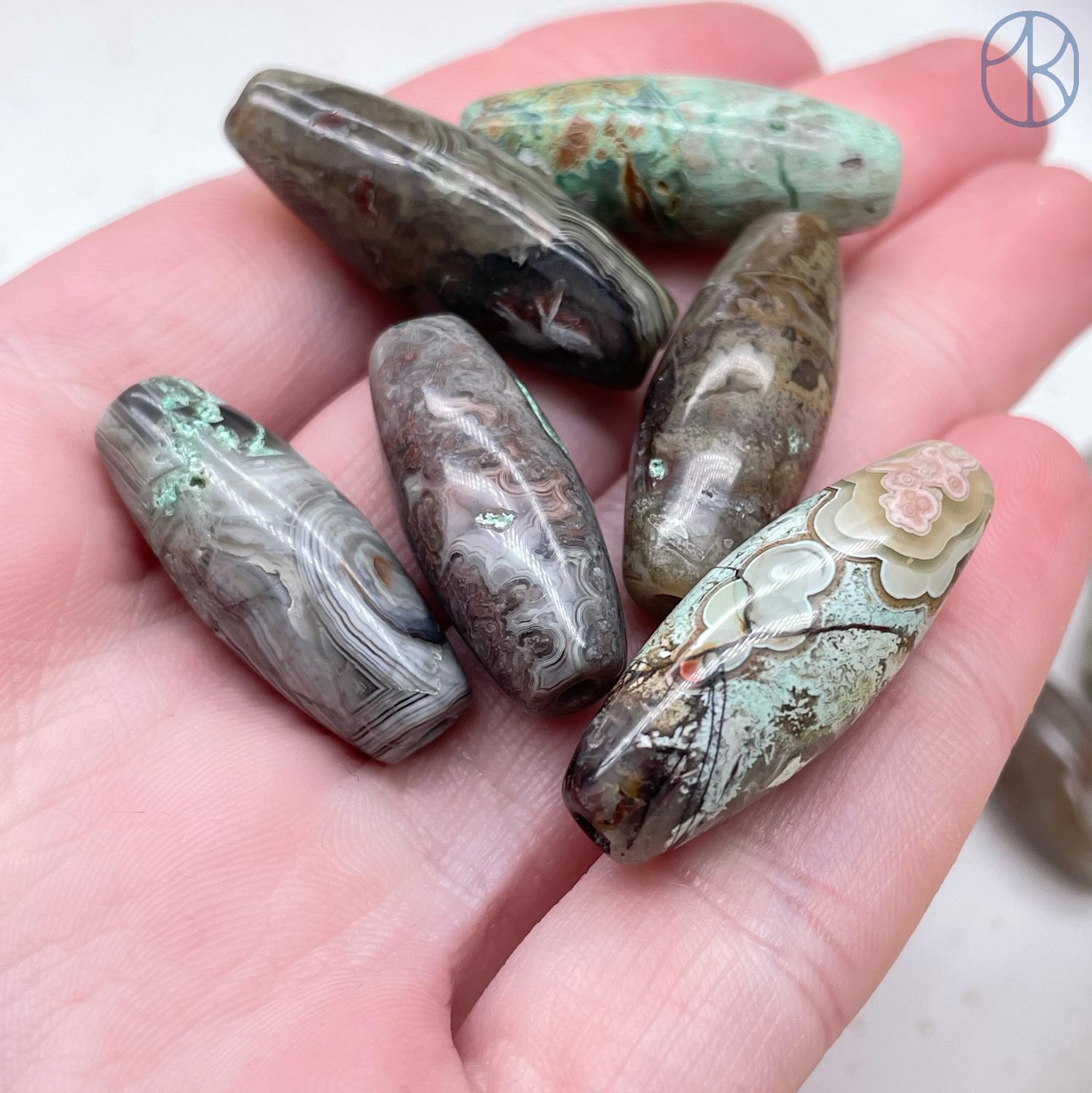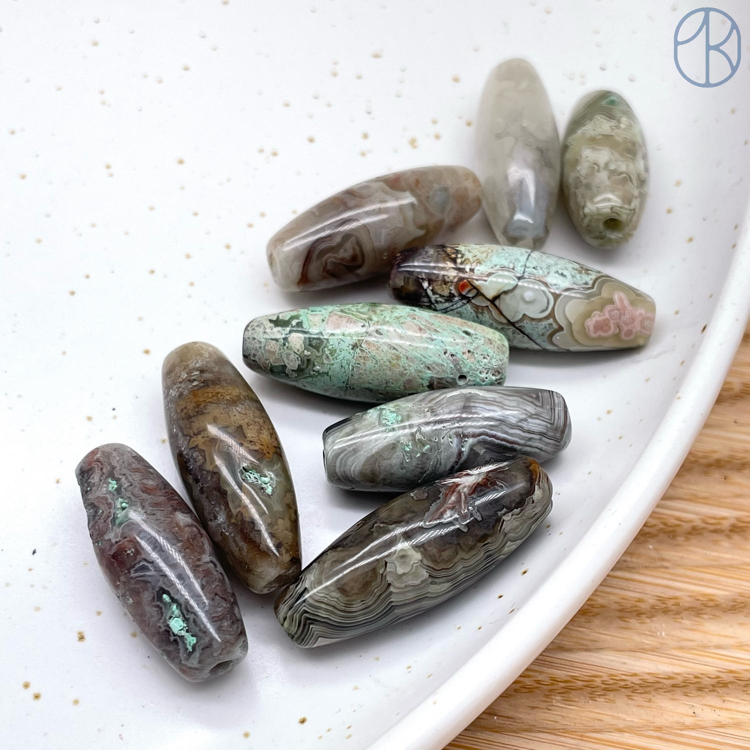Бусина Дзи с природным рисунком универсальна в использовании.