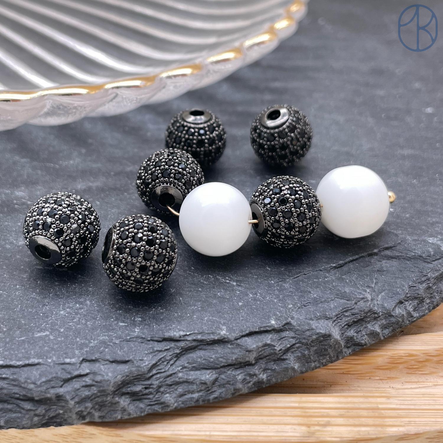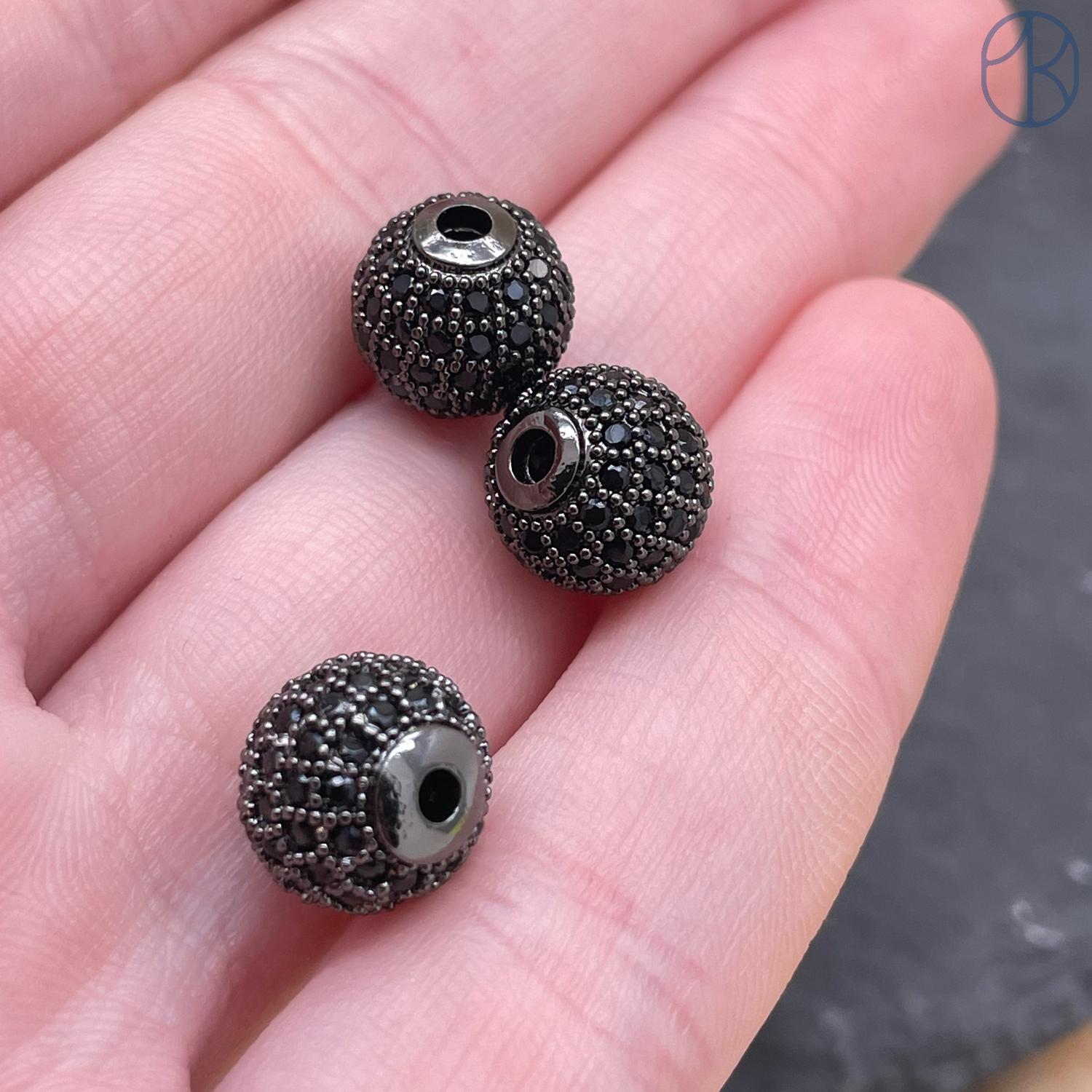 Бусина шар с черными цирконами, цвет черный 10 мм