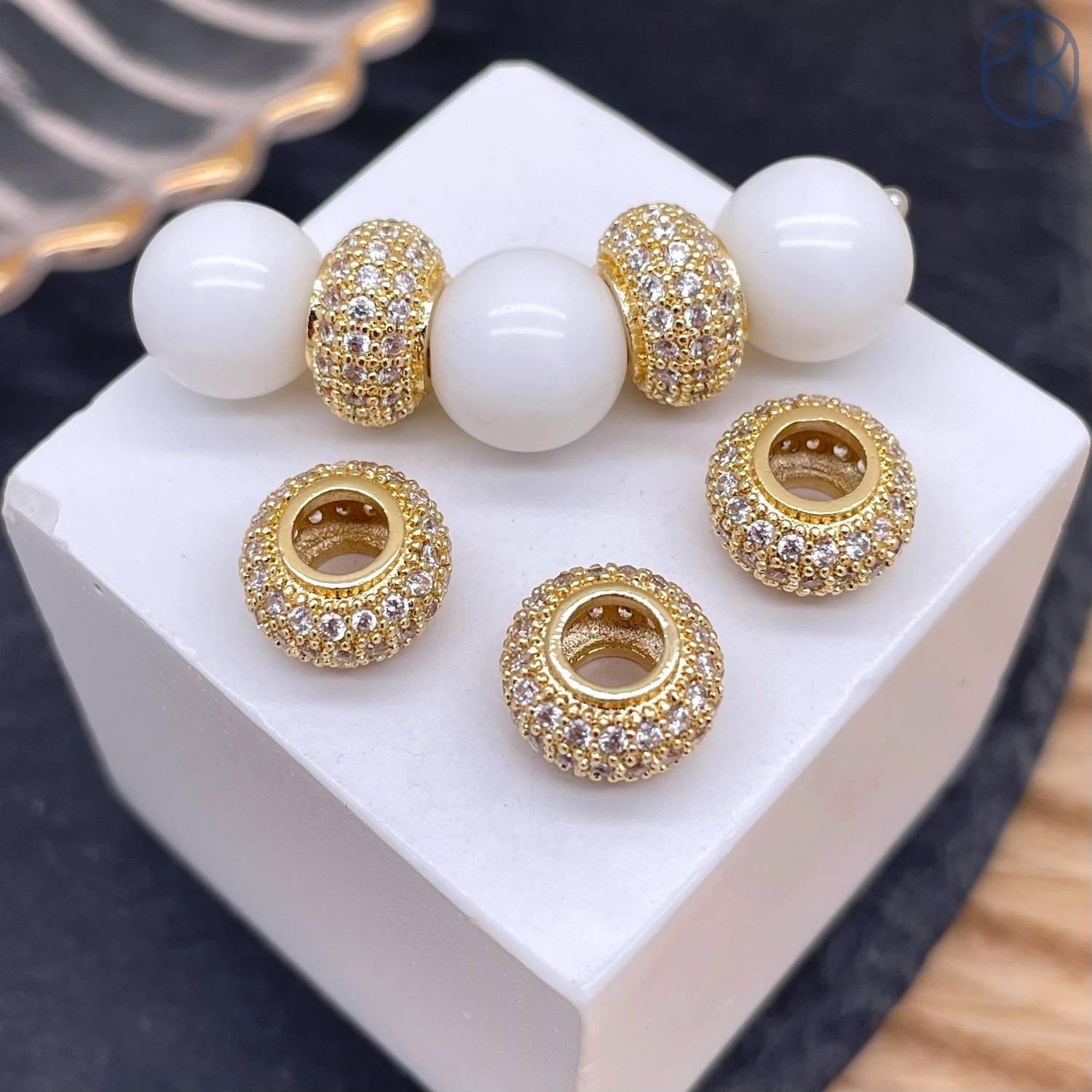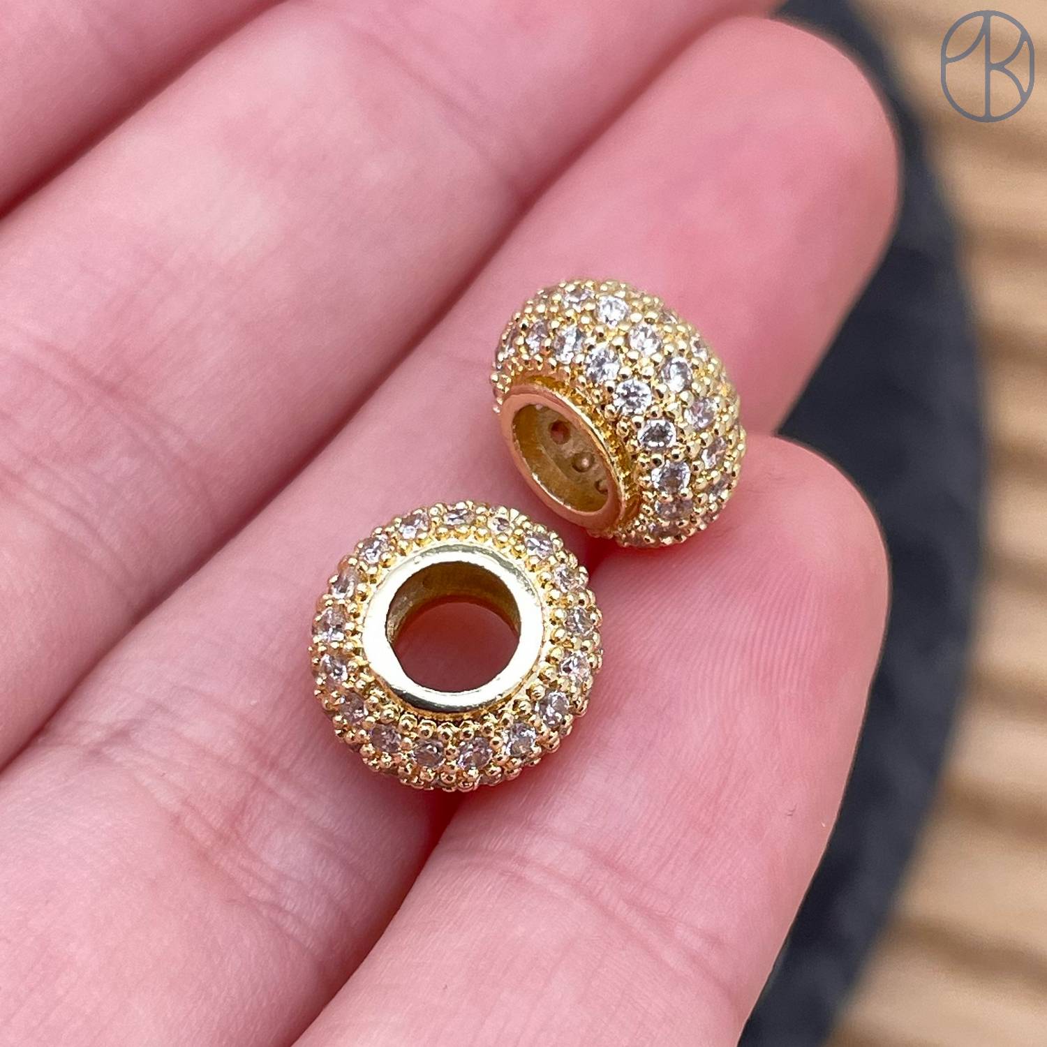Бусина рондель цирконы, цвет золото 10х6 мм