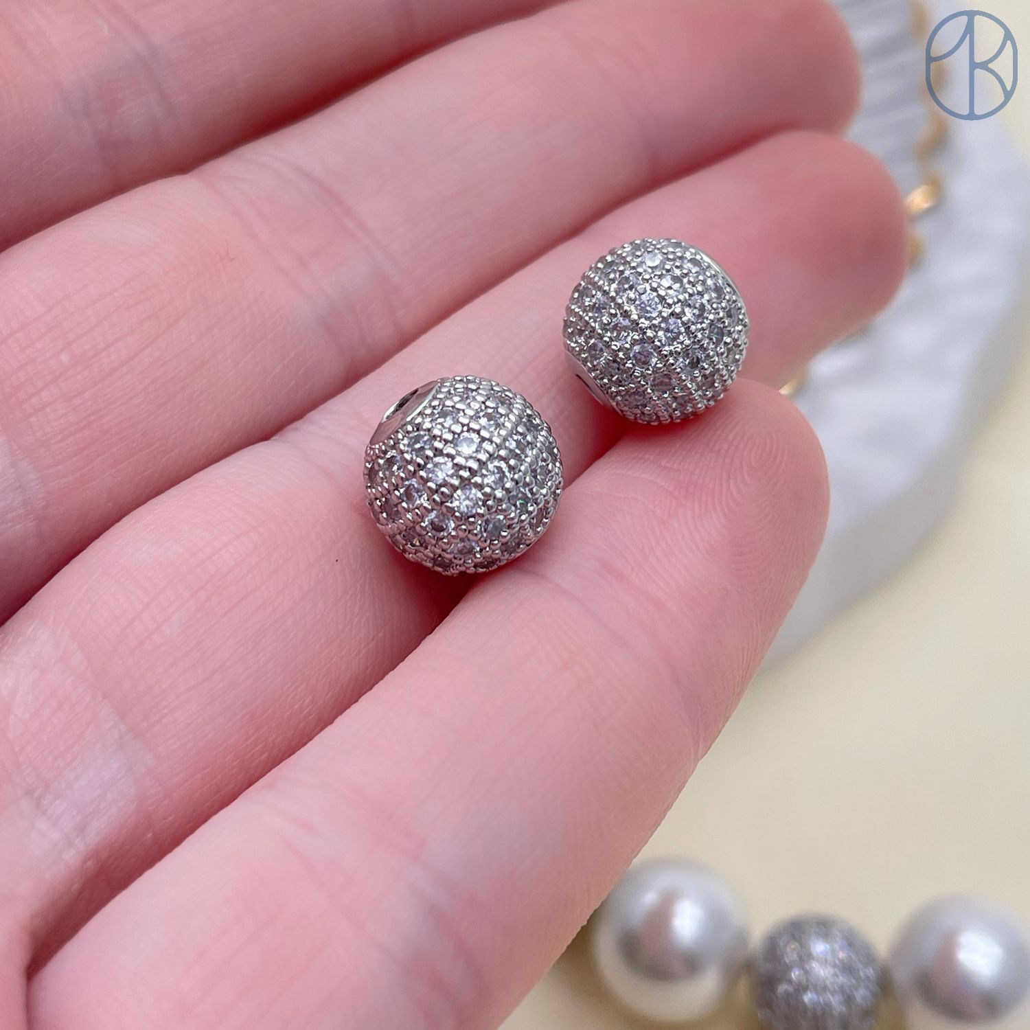 Бусина шар цирконы, цвет серебро 10 мм