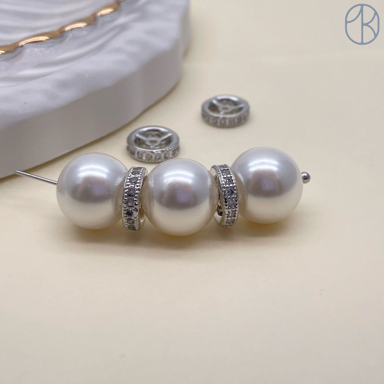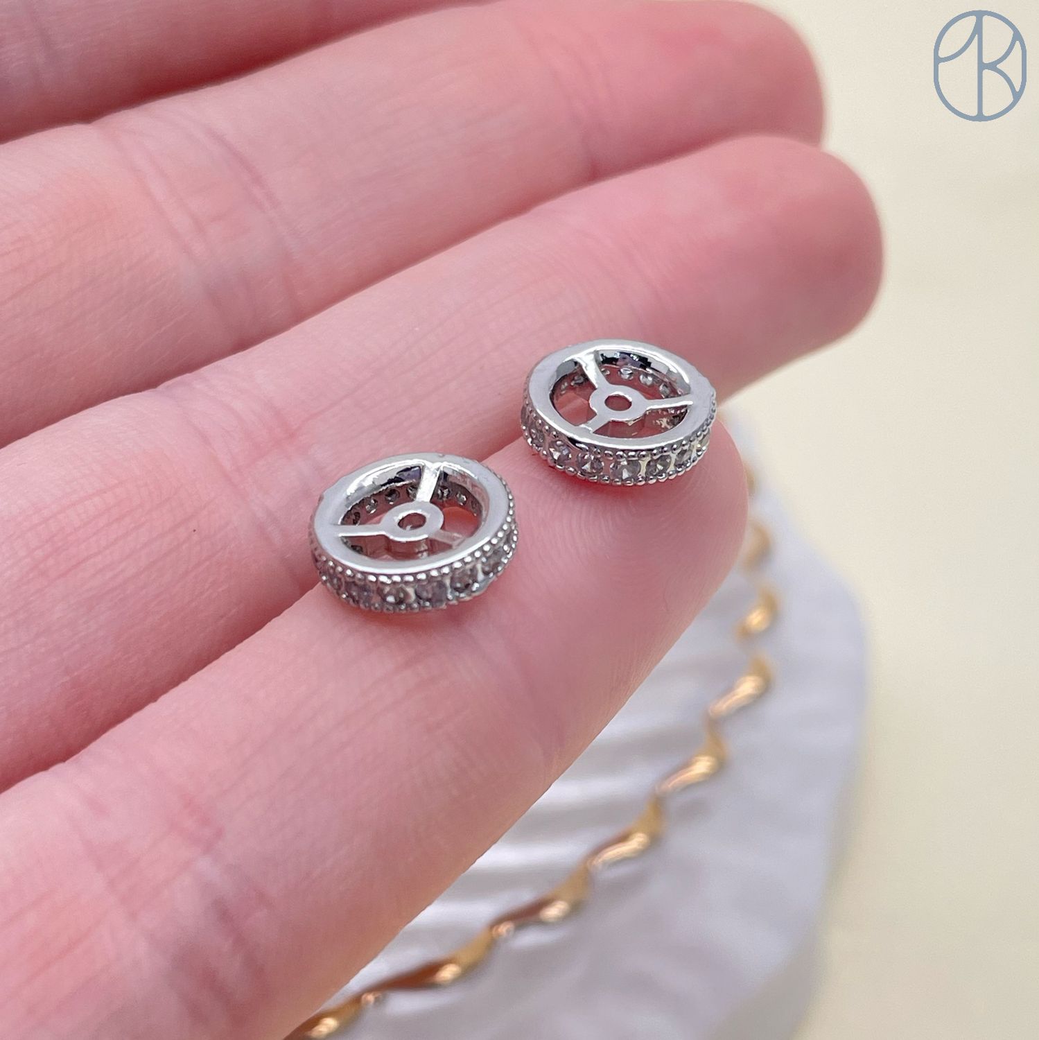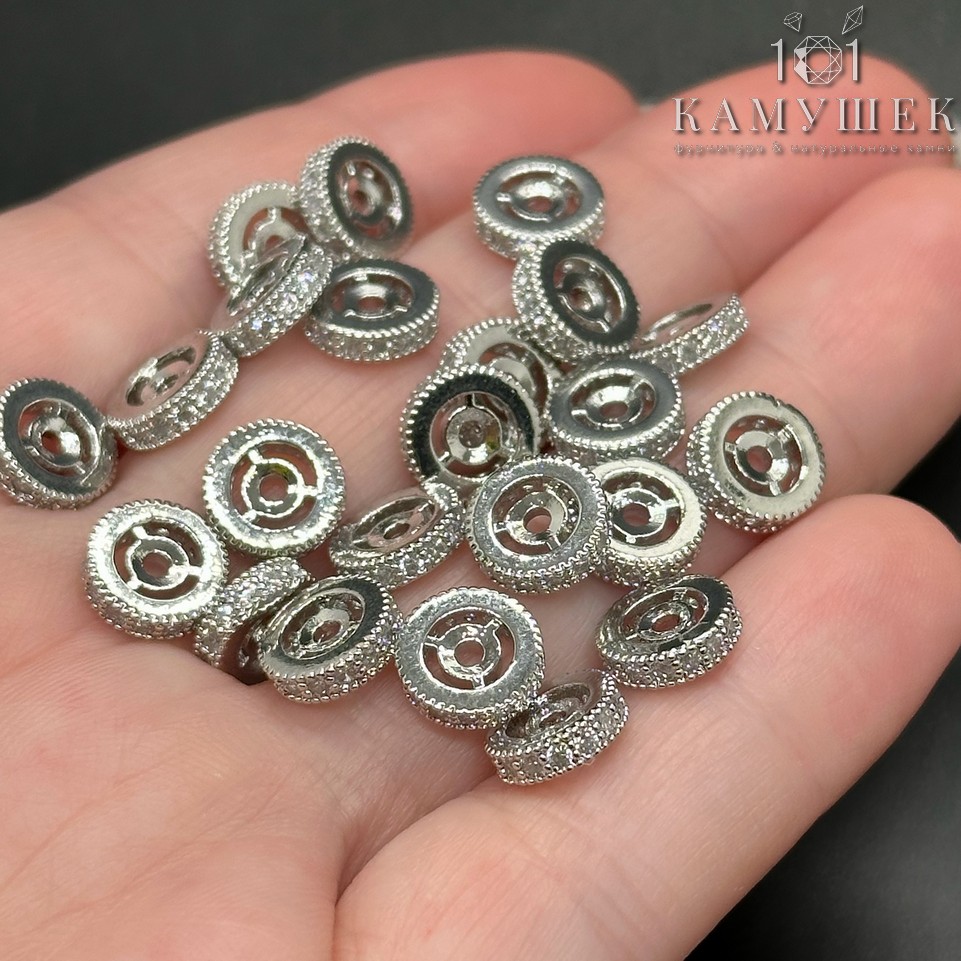 Бусина рондель с цирконами, цвет серебро 8х2 мм