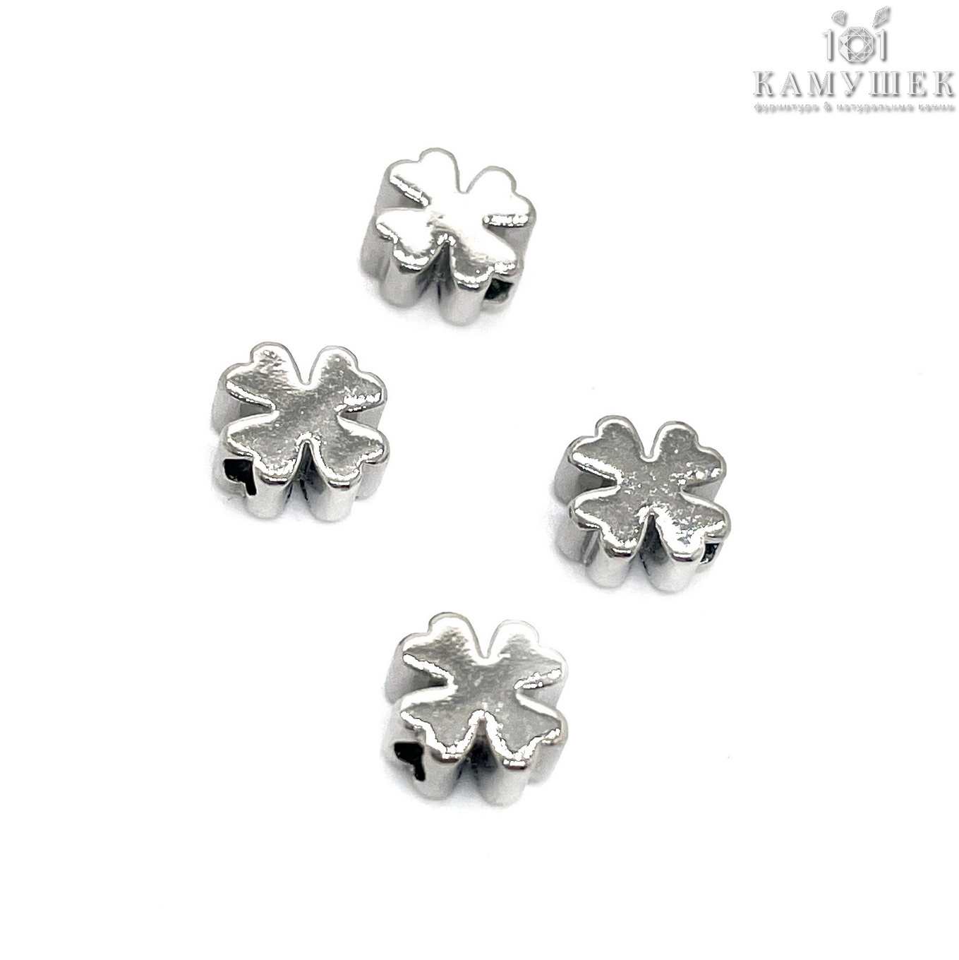 Бусина клевер, цвет серебро 6 мм