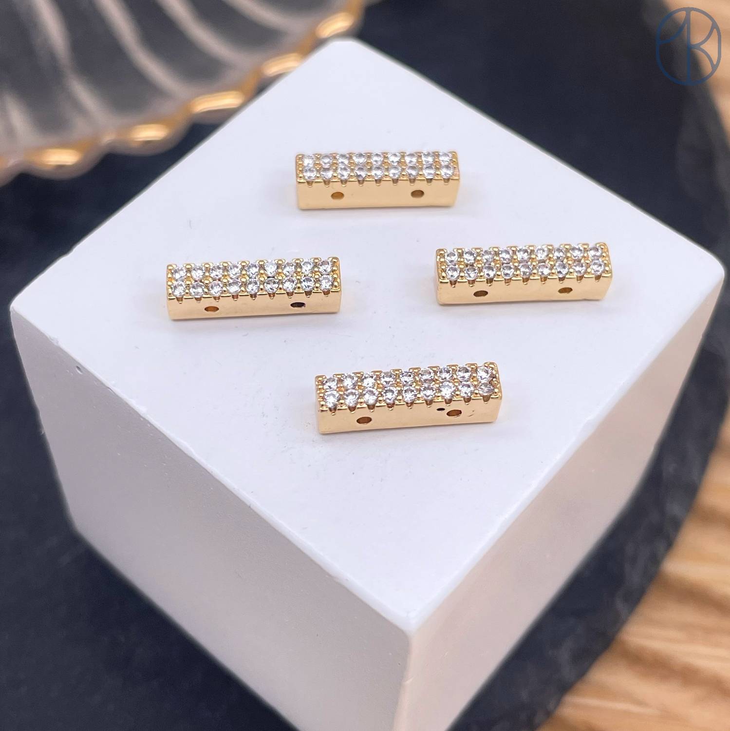 Бусина 4 ряда цирконы, цвет золото 12 мм