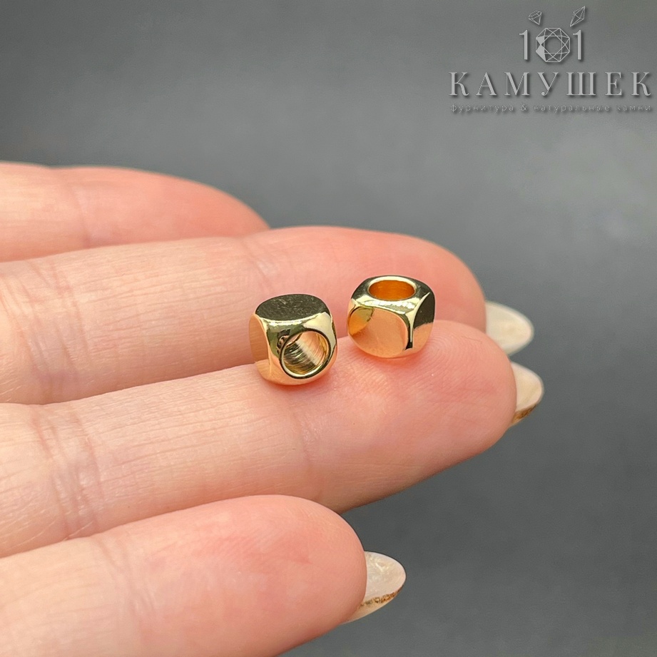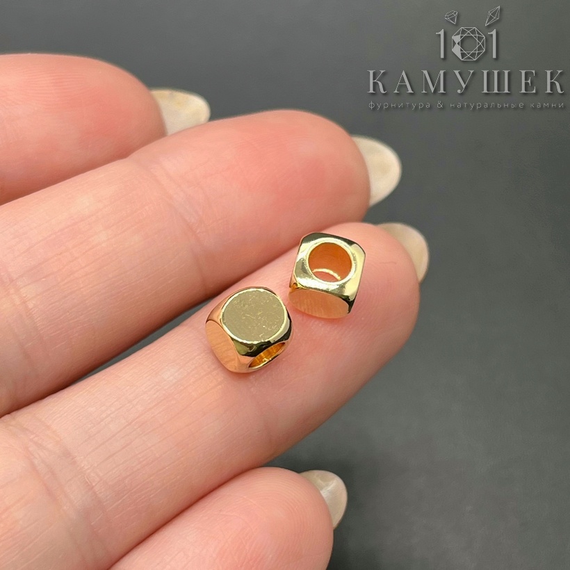 Бусина куб, цвет золото 6 мм