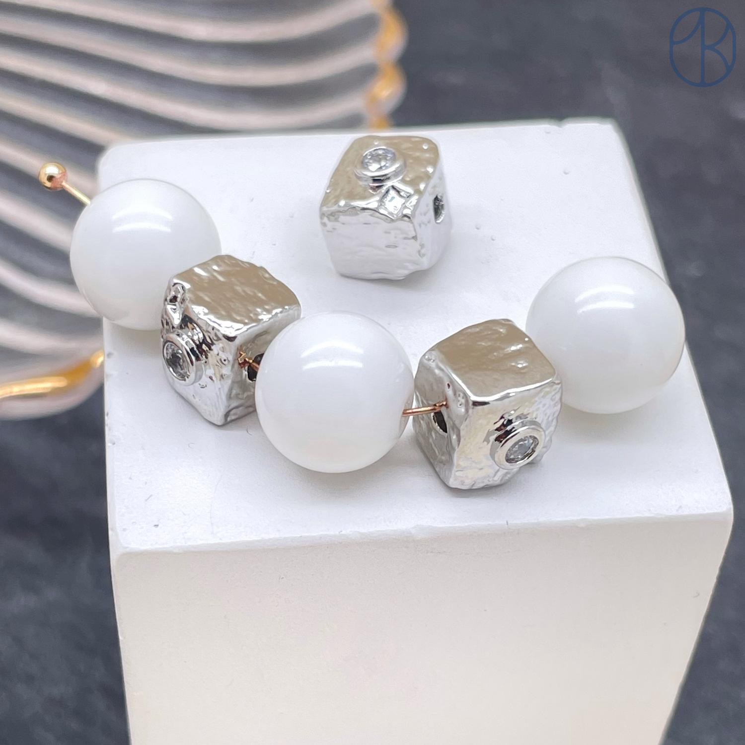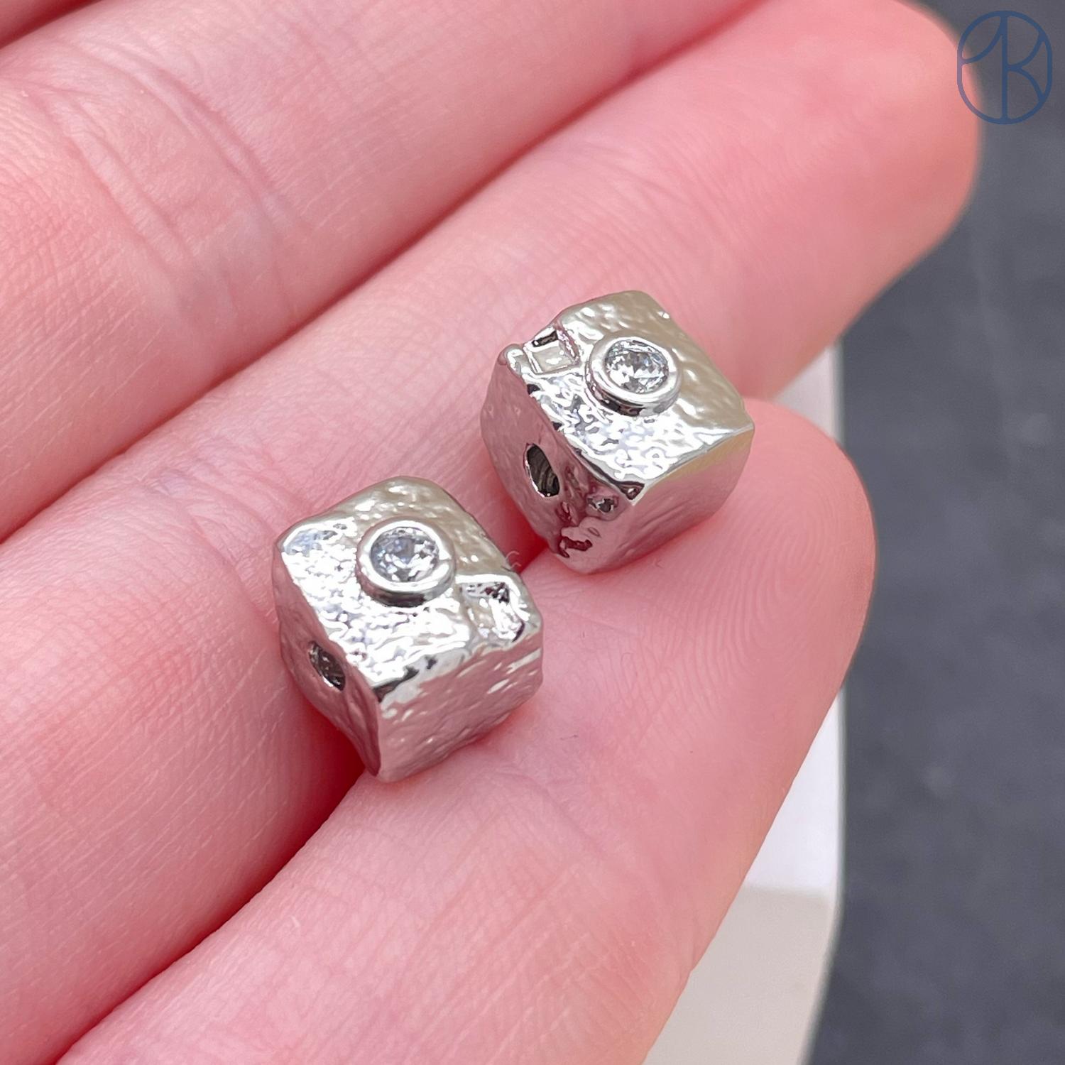 Бусина прямоугольник циркон, цвет серебро 8х7 мм
