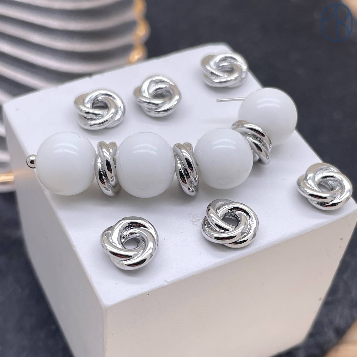 Бусина двойная, цвет серебро 8 мм