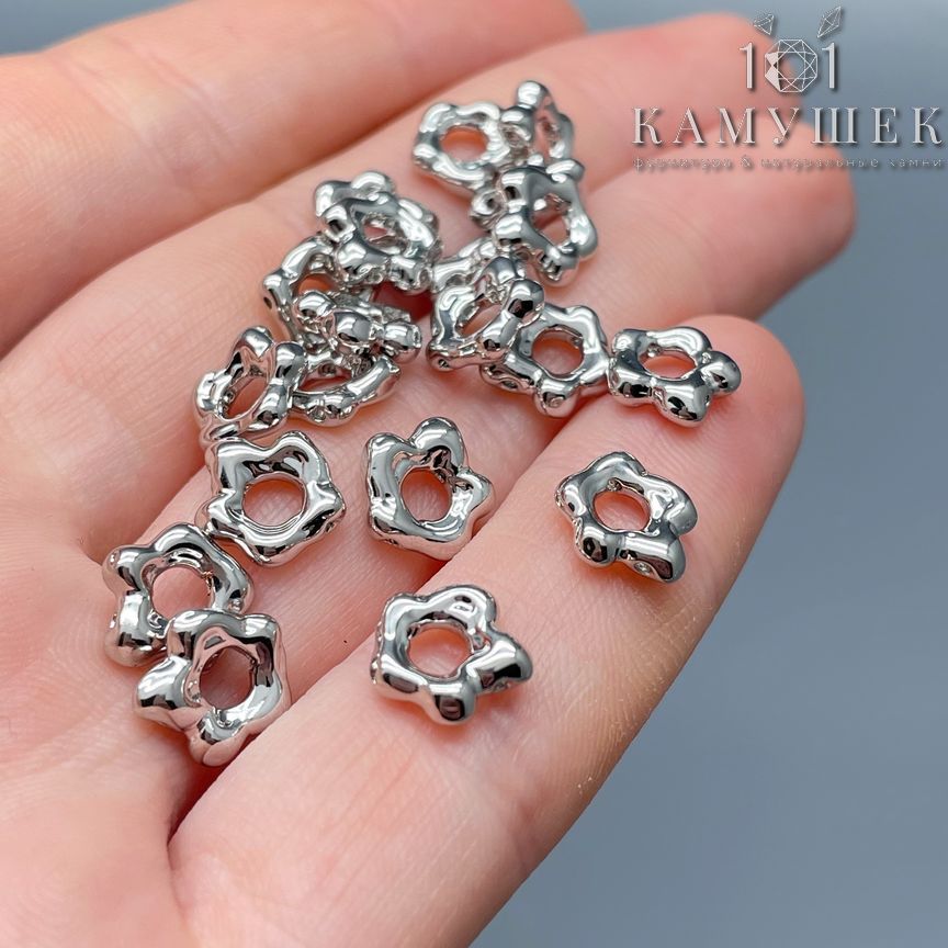 Бусина фриформ, цвет серебро 8 мм