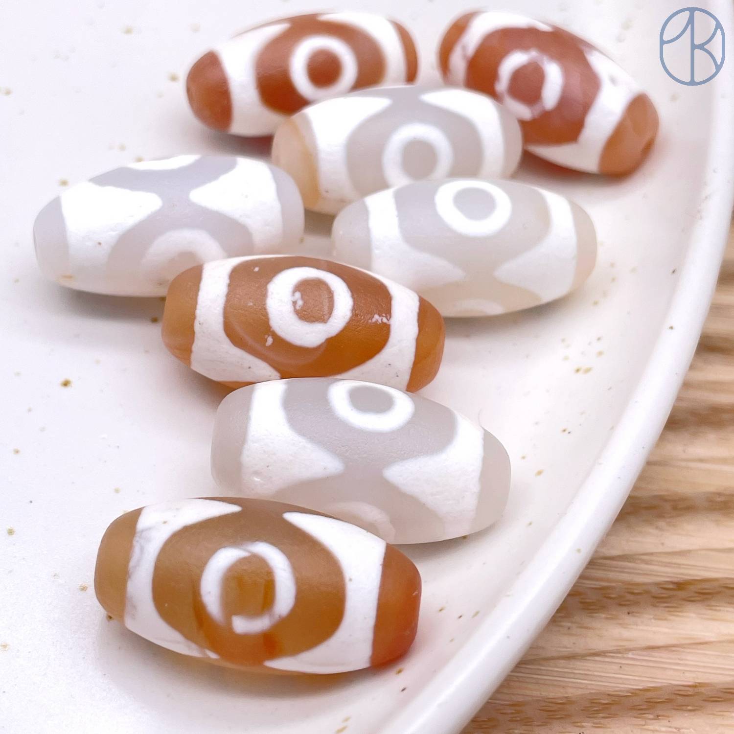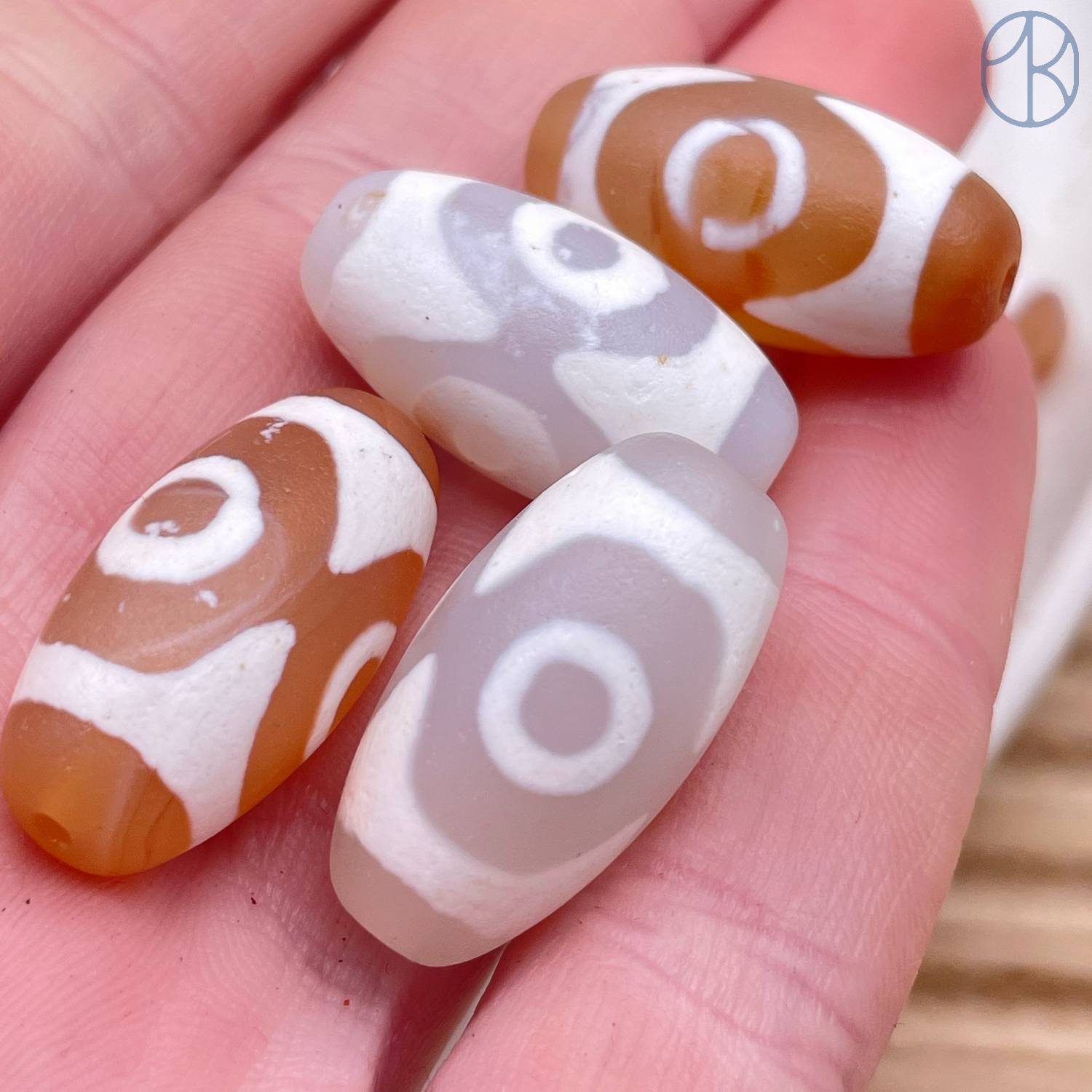 Бусина Дзи 2 глаза серо-белый бочонок 24х14 мм