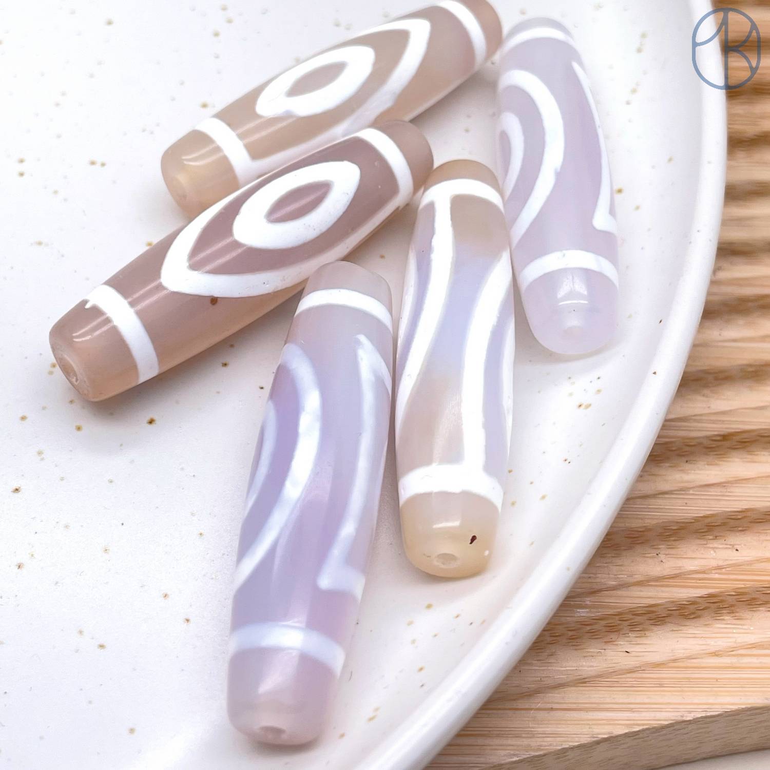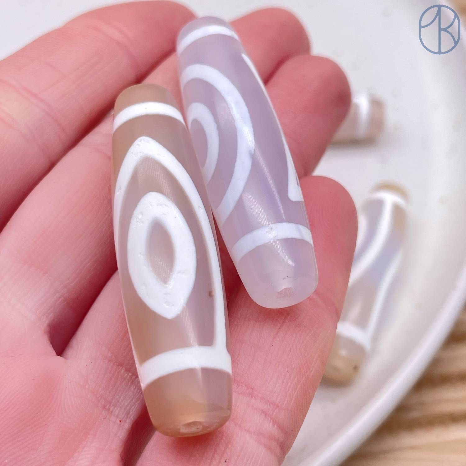Бусина Дзи 2 глаза серо-белый бочонок 50х14 мм