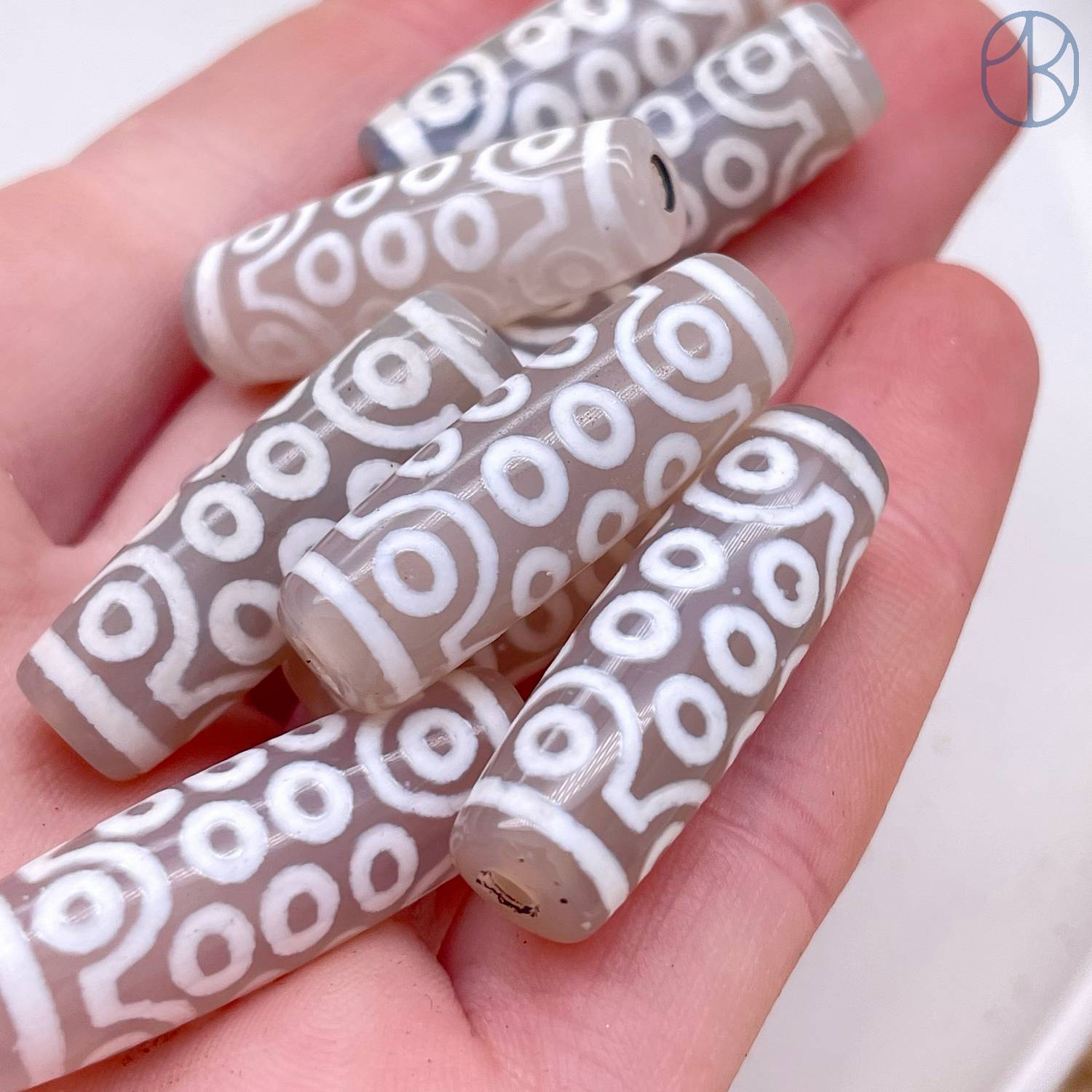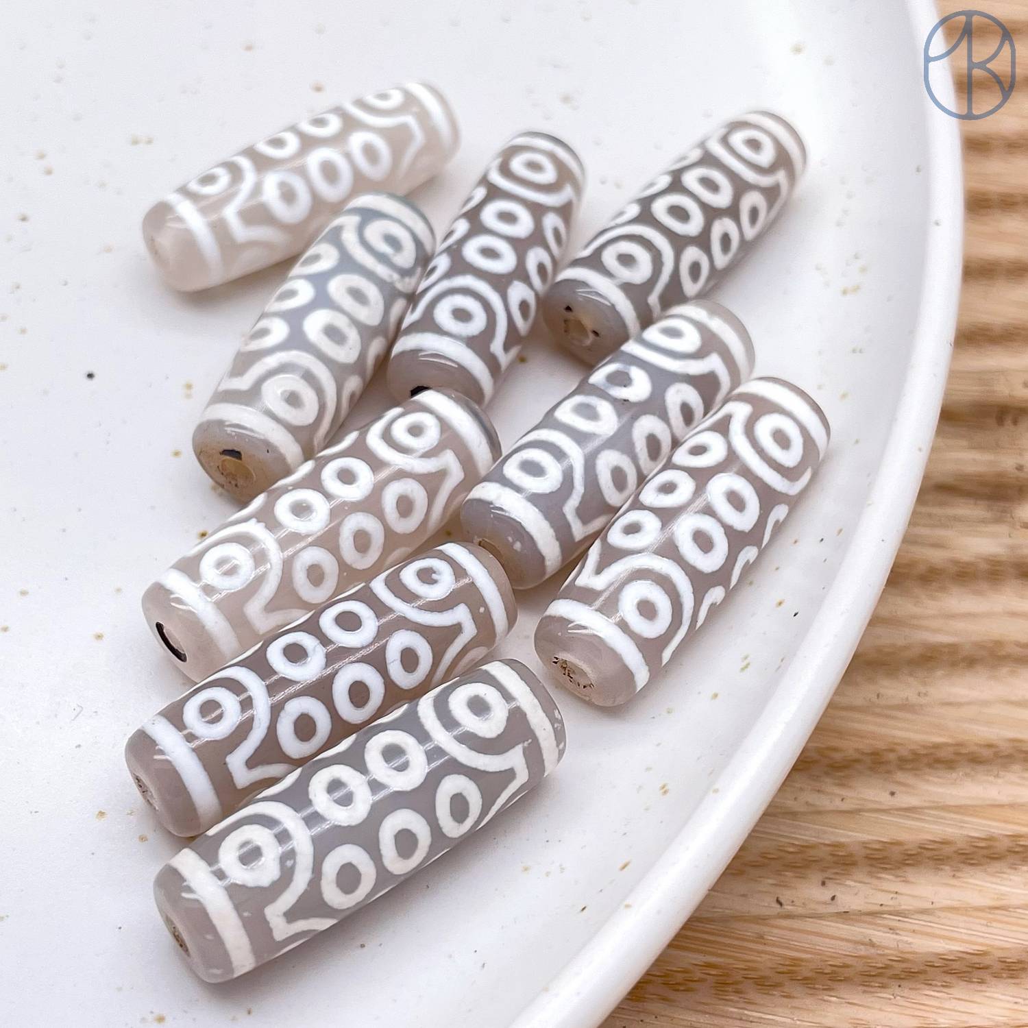 Бусина Дзи 21 глаз серо-белый бочонок 30х11 мм