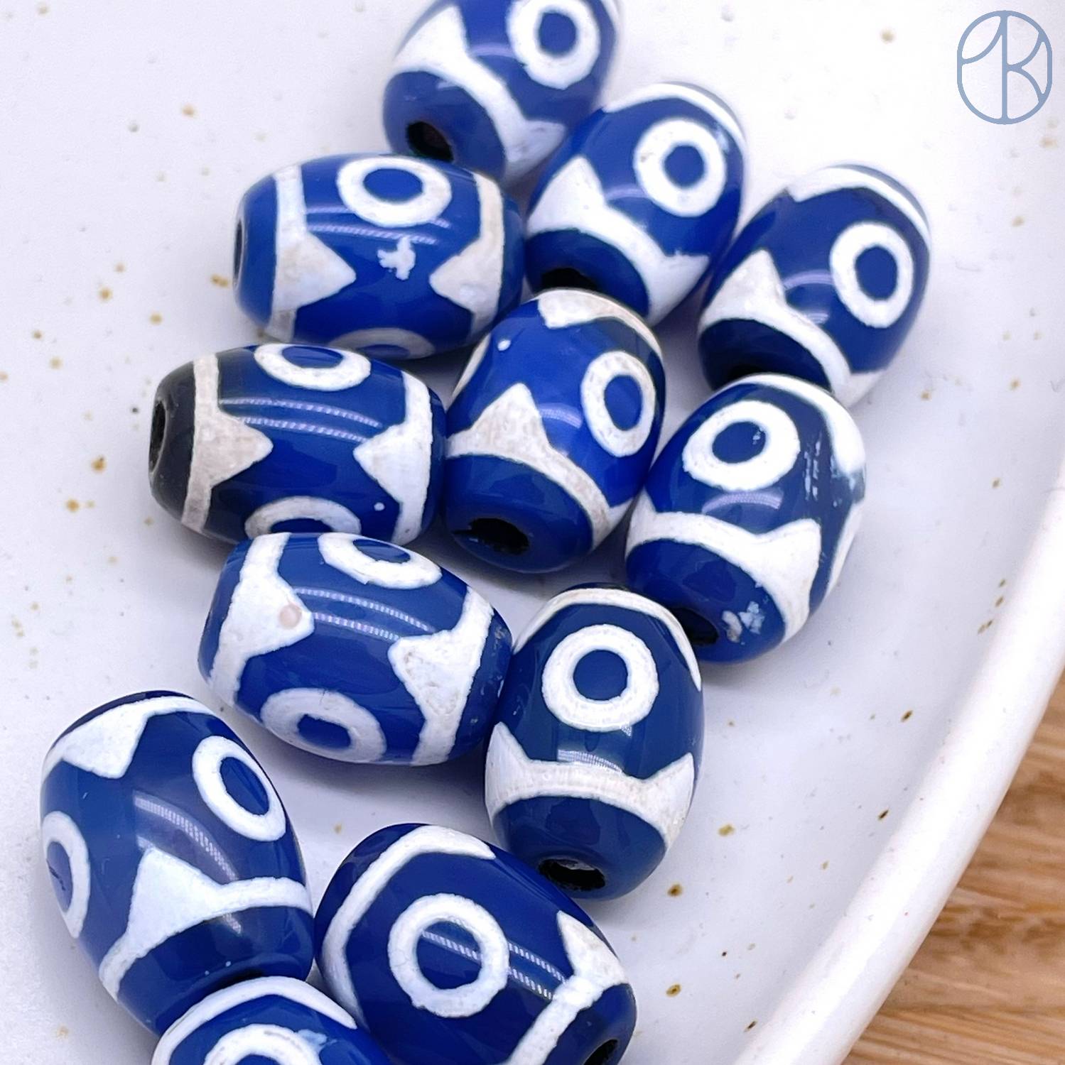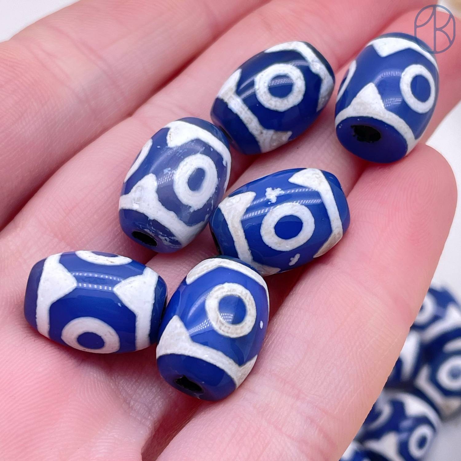 Бусина Дзи 3 глаза сине-белый бочонок уп. 5шт 16х12 мм