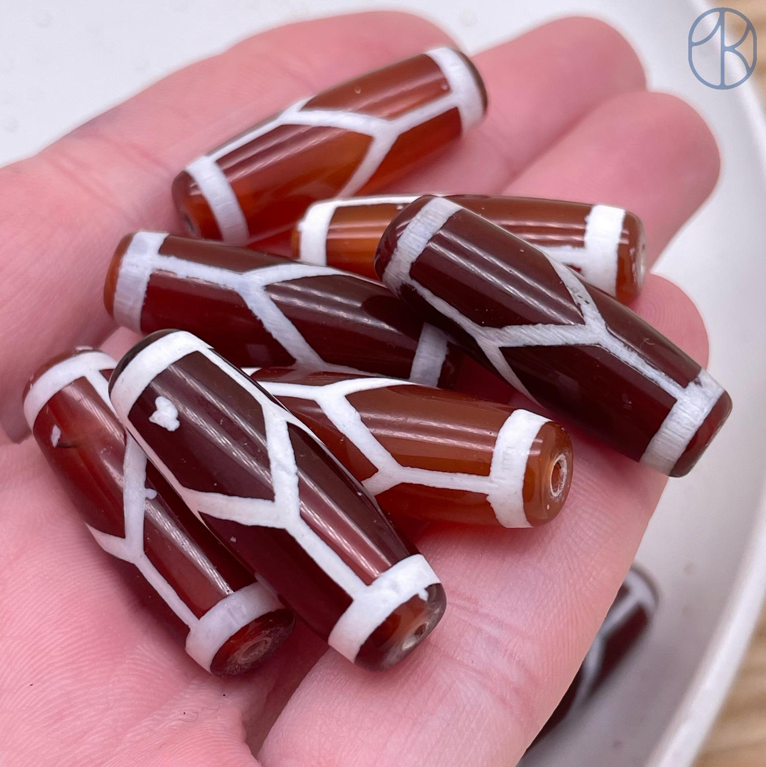 Бусина Дзи черепаха коричнево-белый бочонок 30х11 мм