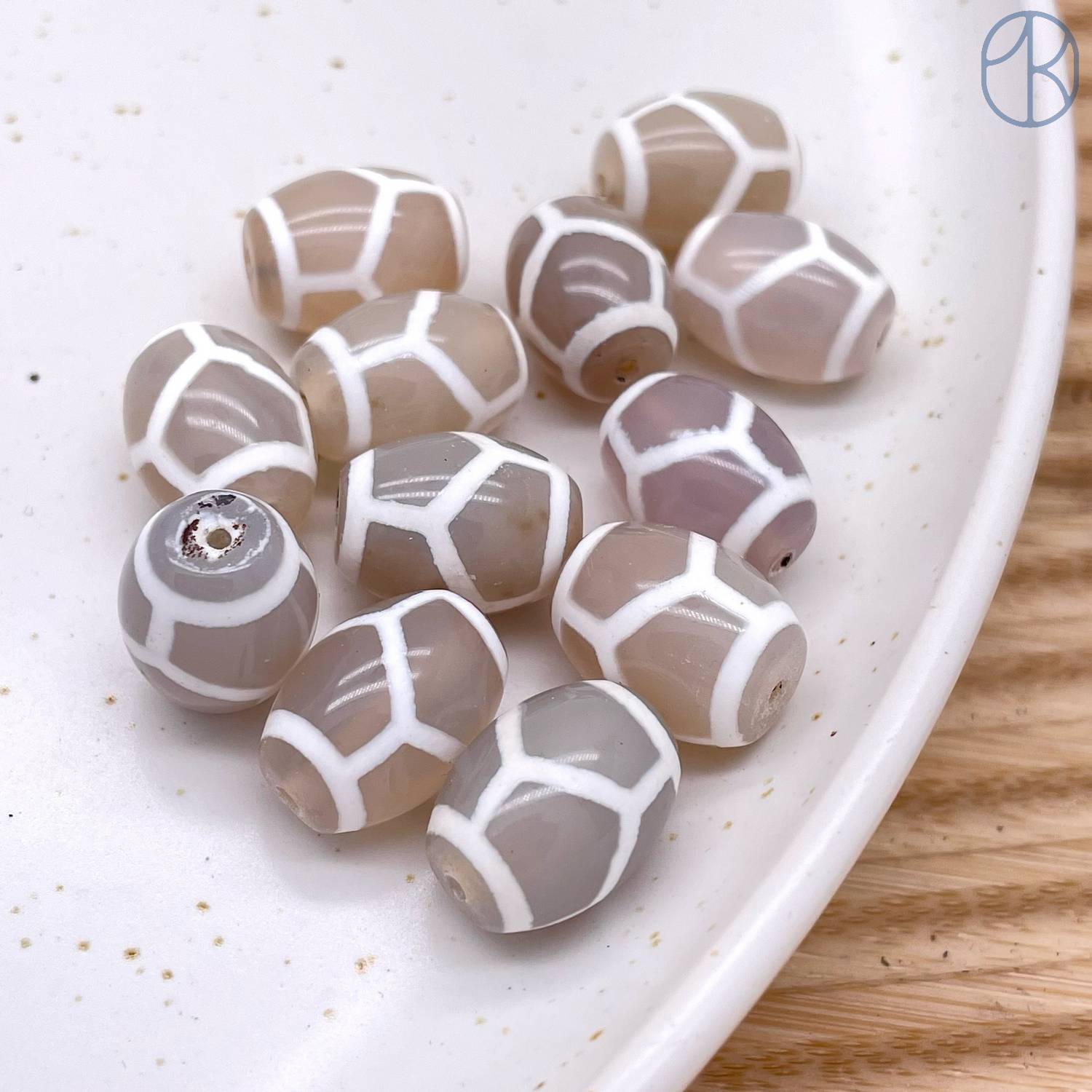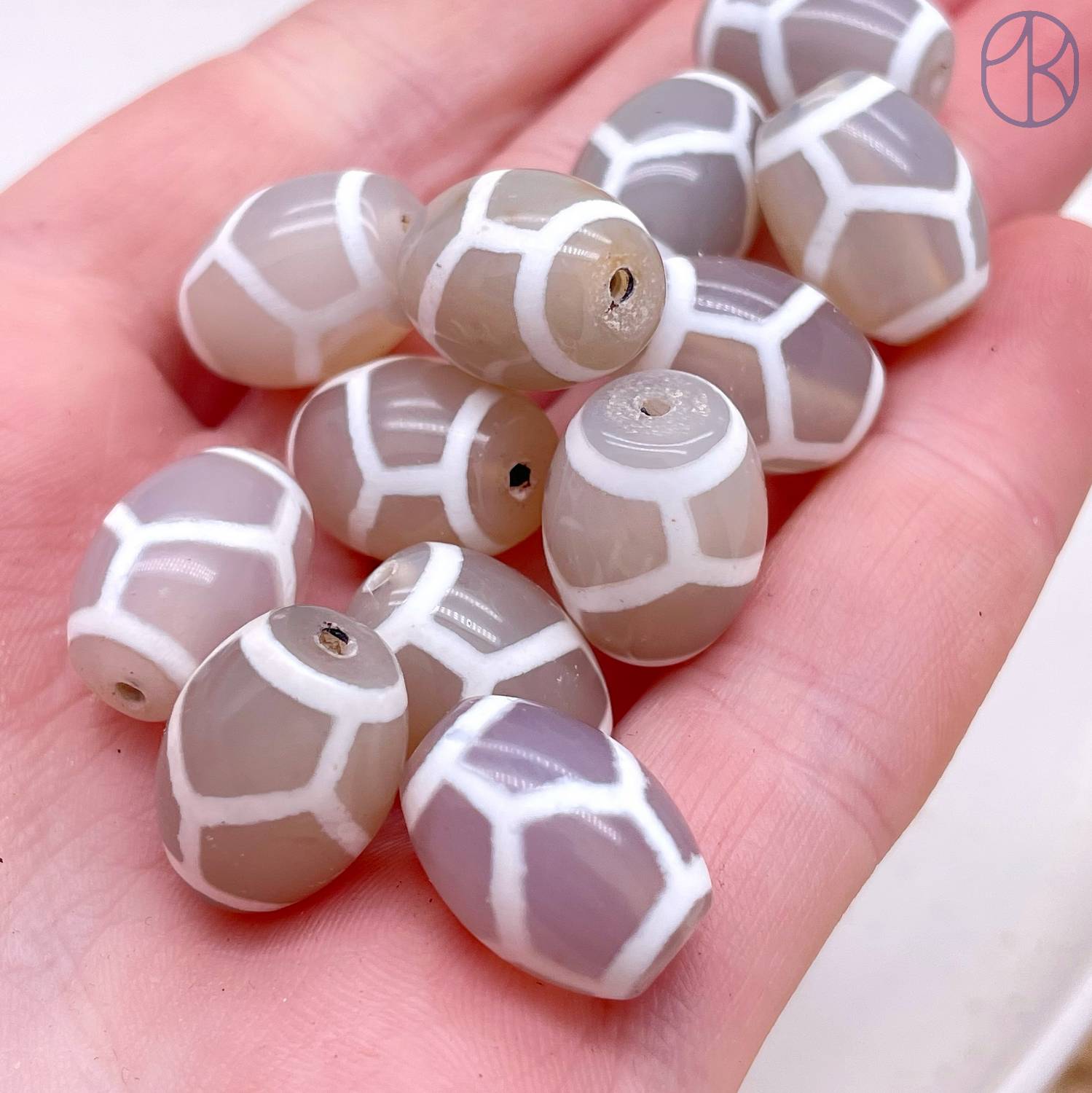 Бусина Дзи Черепаха серо-белый бочонок уп. 5 шт 15х12 мм