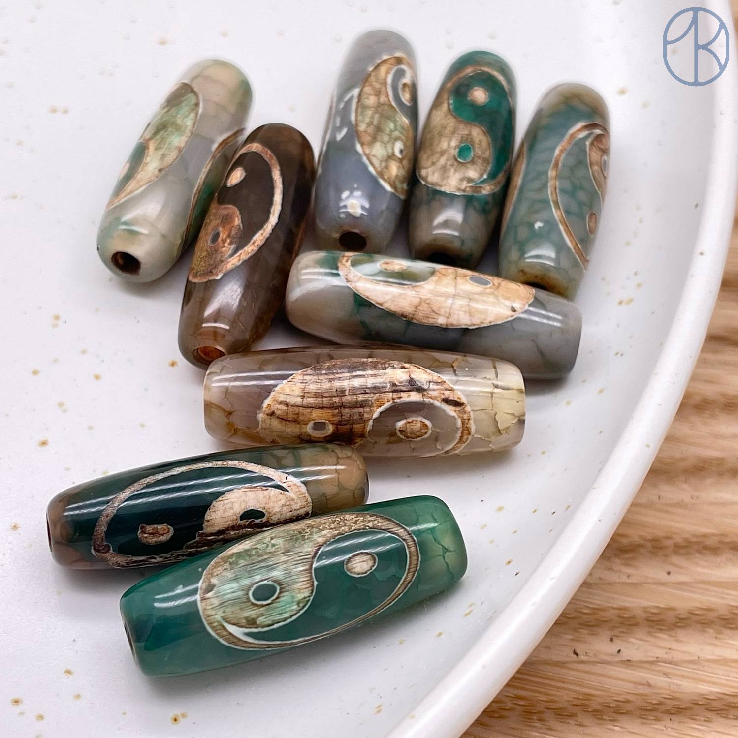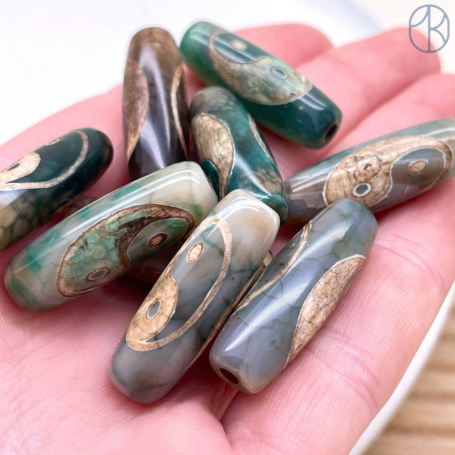 Бусина Дзи Инь-Янь серо-зеленый бочонок 30х11 мм