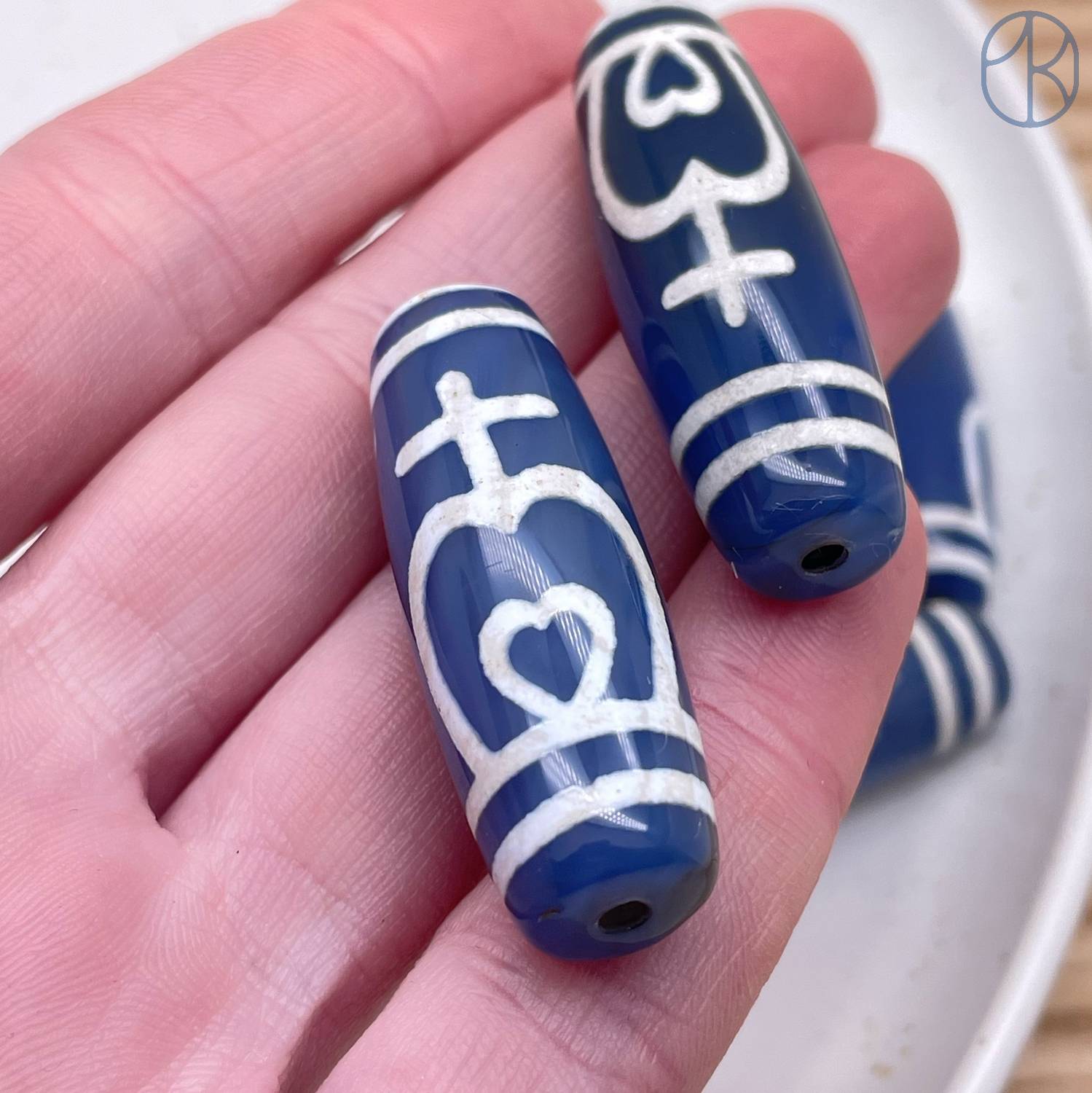 Бусина Дзи Нектарный Сосуд Изобилия бело-синий бочонок 40х14 мм