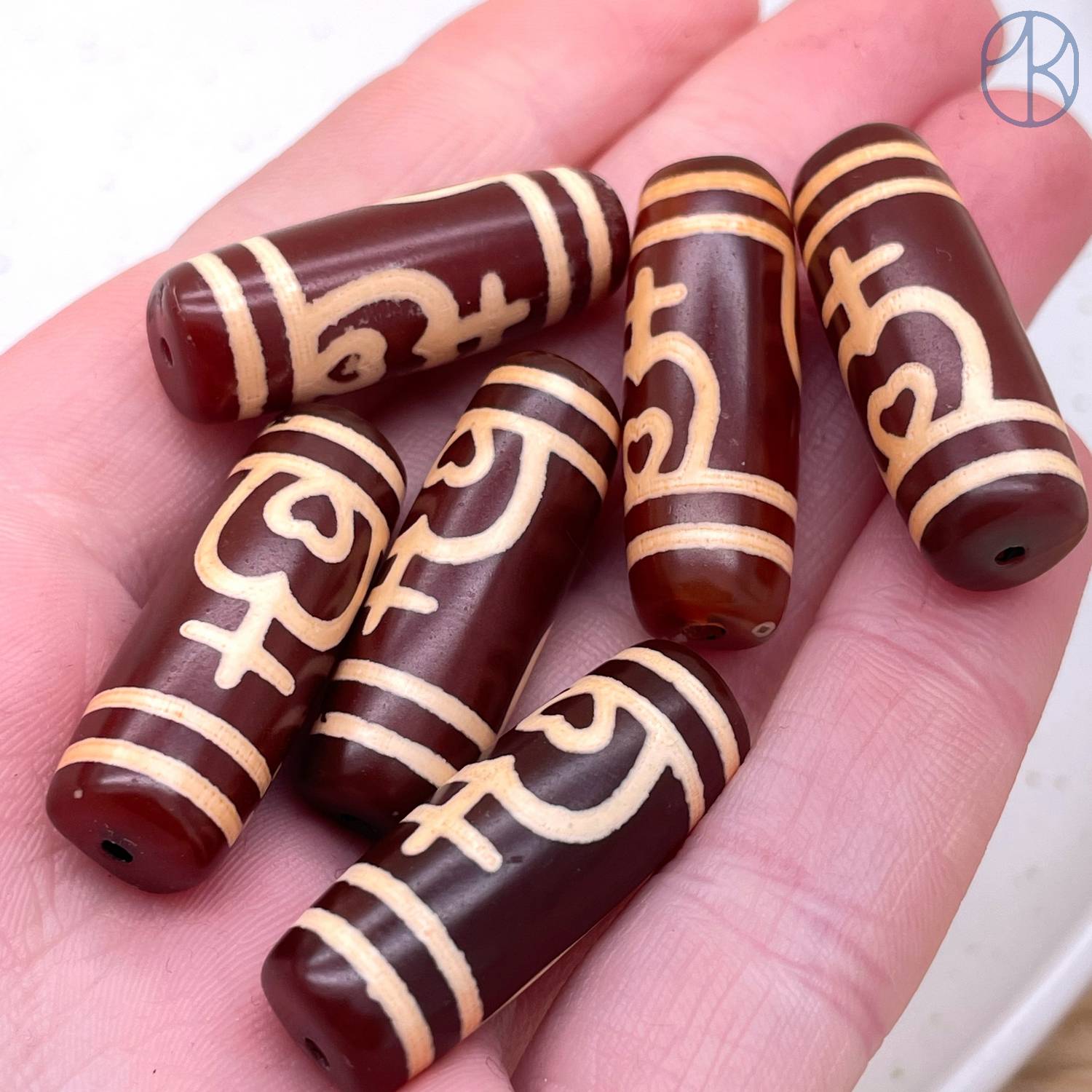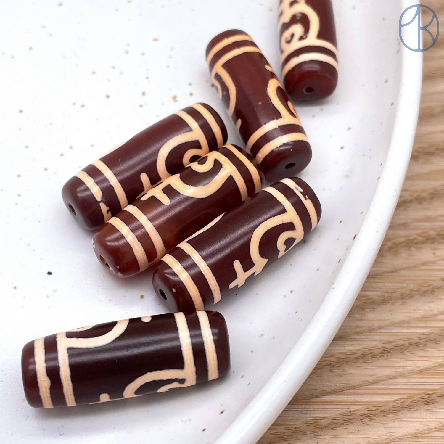 Бусина Дзи Нектарный Сосуд Изобилия коричнево-бежевый бочонок 30х11 мм
