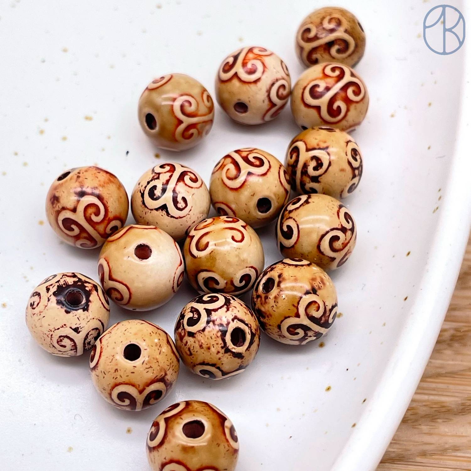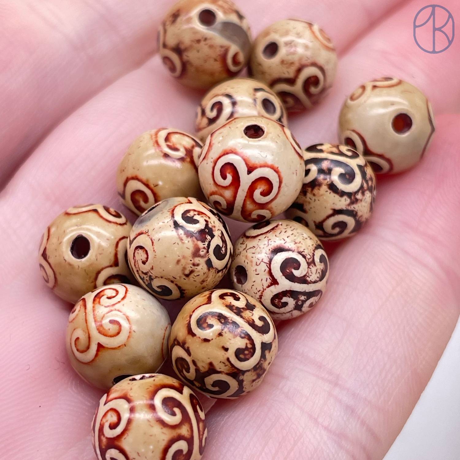 Бусина Дзи Вены Дракона коричневый шар уп. 5 шт 10 мм