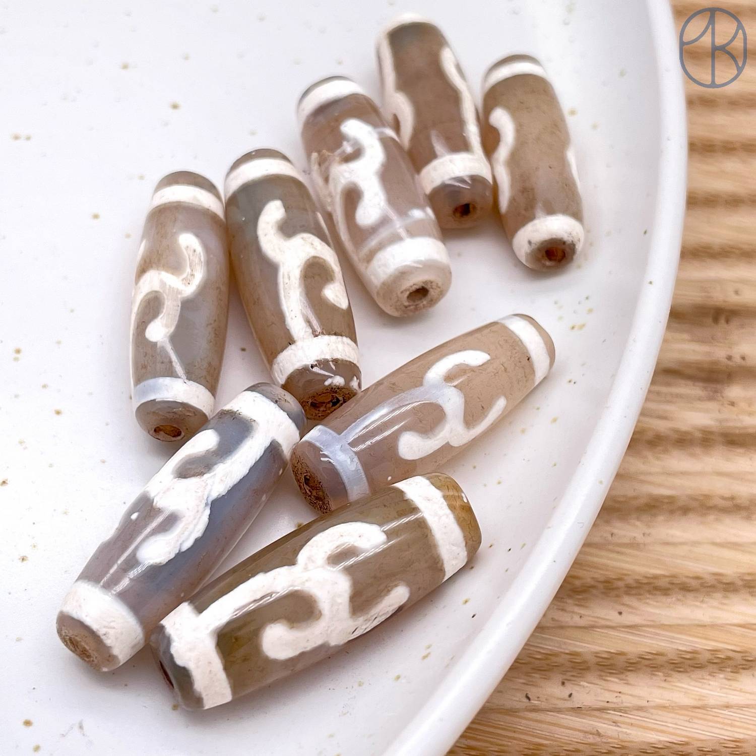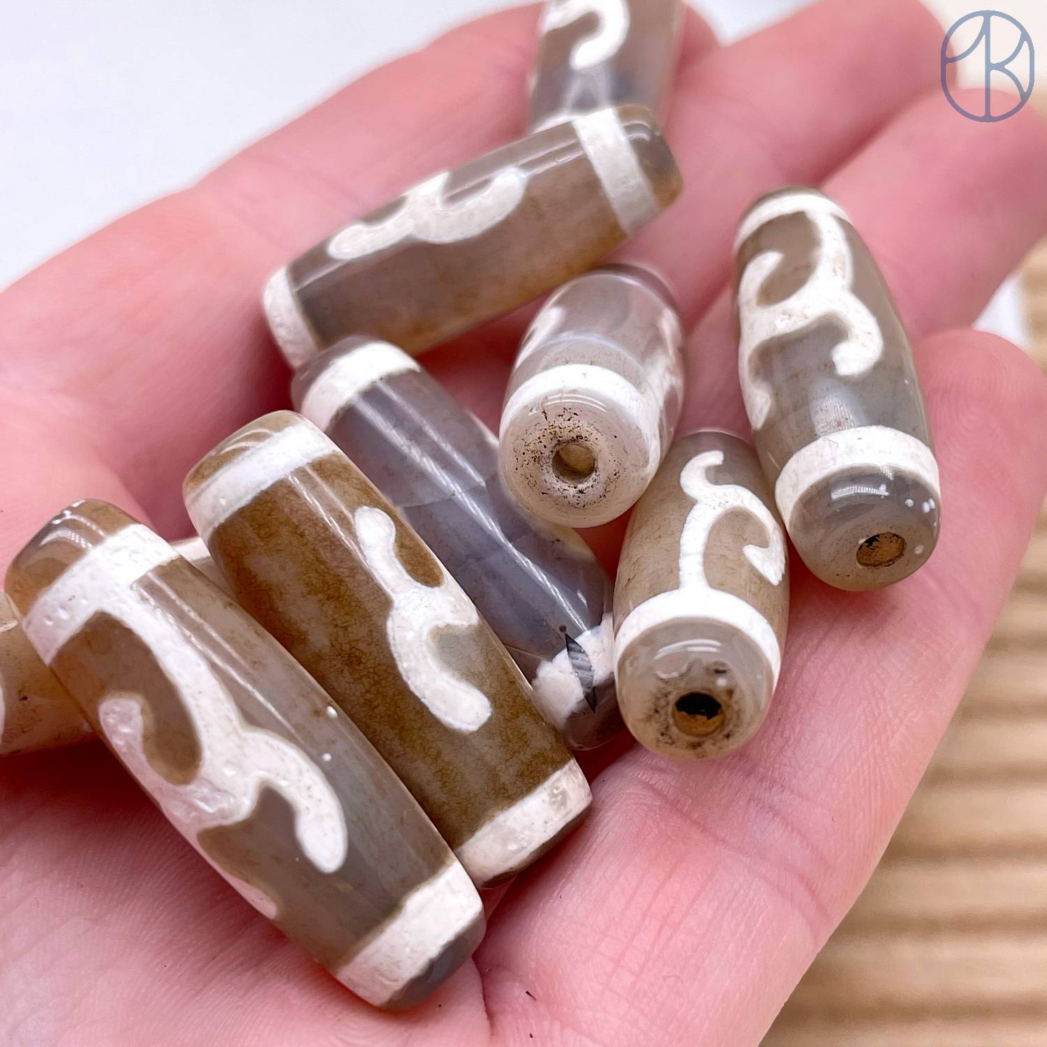 Бусина Дзи Зеленая тара серо-коричневый бочонок 30х10 мм