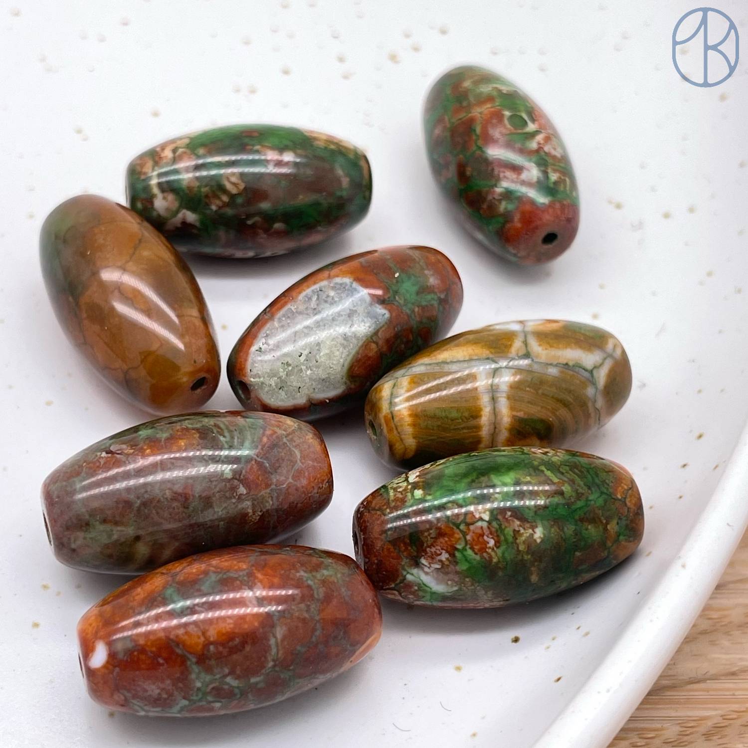Бусина Дзи с природным рисунком универсальна в использовании.
