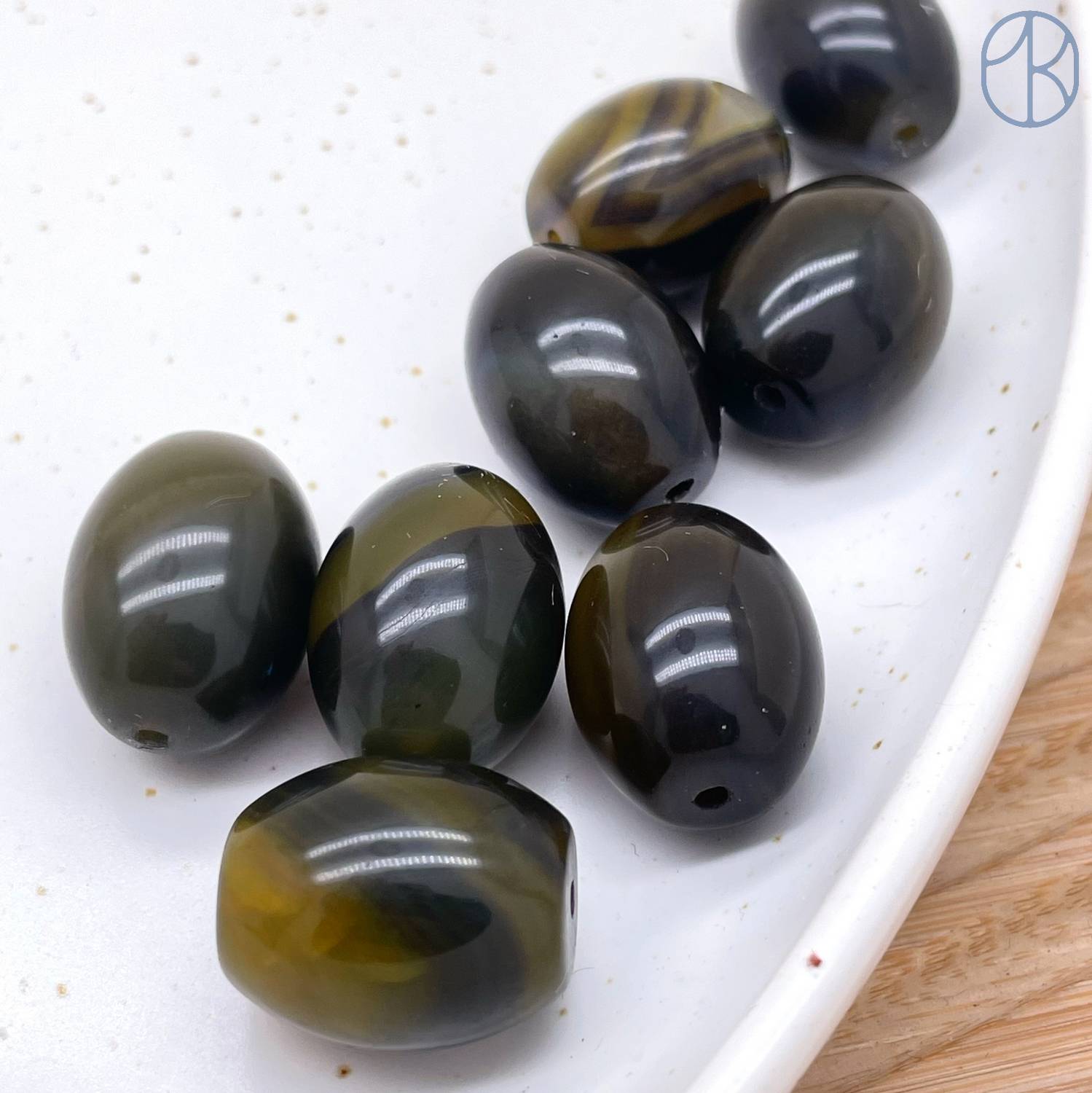 Бусина Дзи с природным рисунком универсальна в использовании.