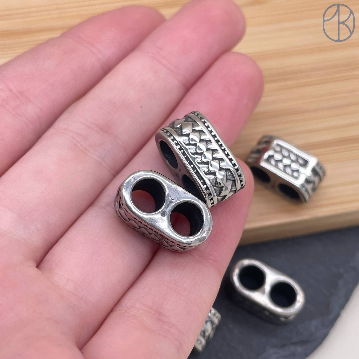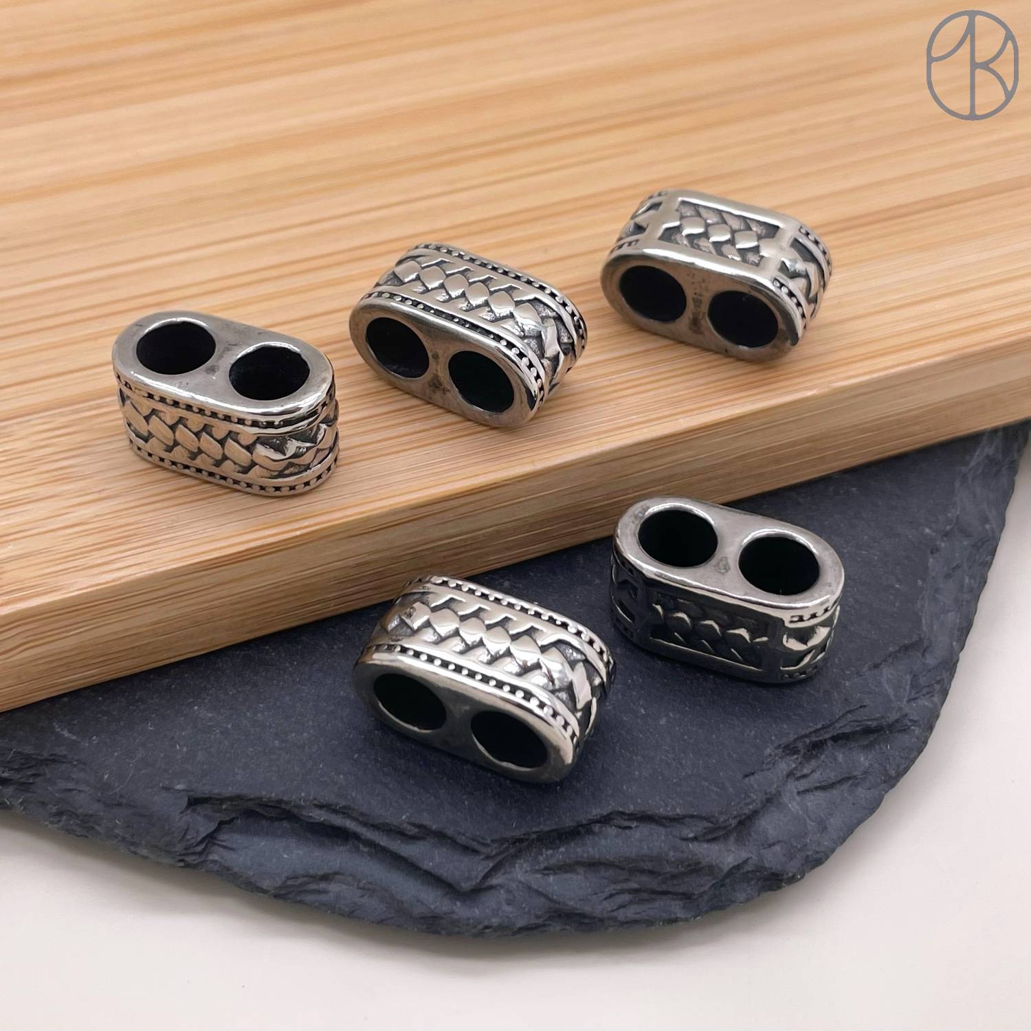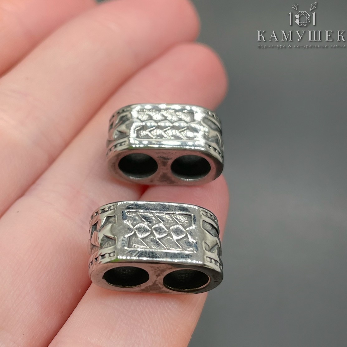Бусина сталь на два ряда, цвет серебо 8х16 мм