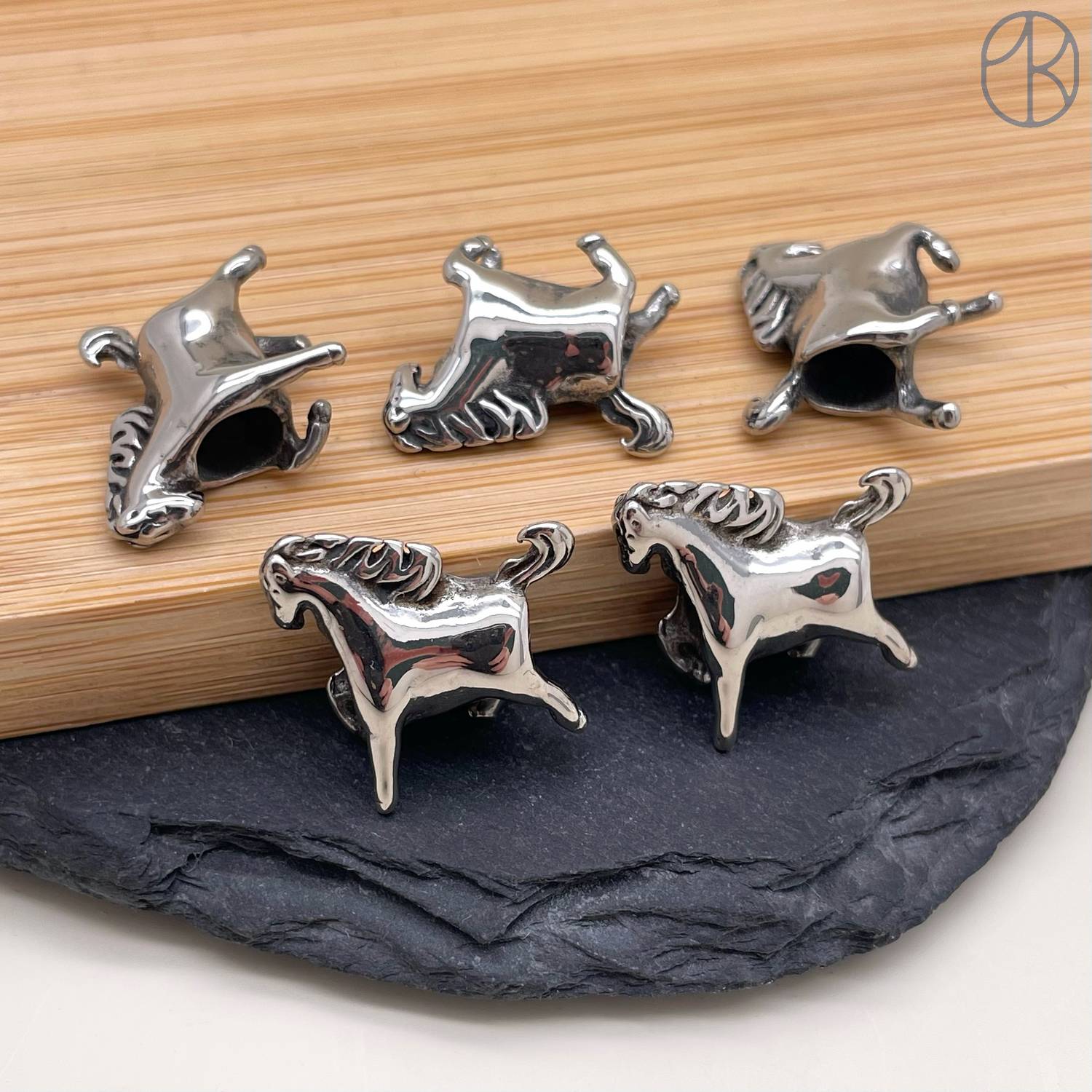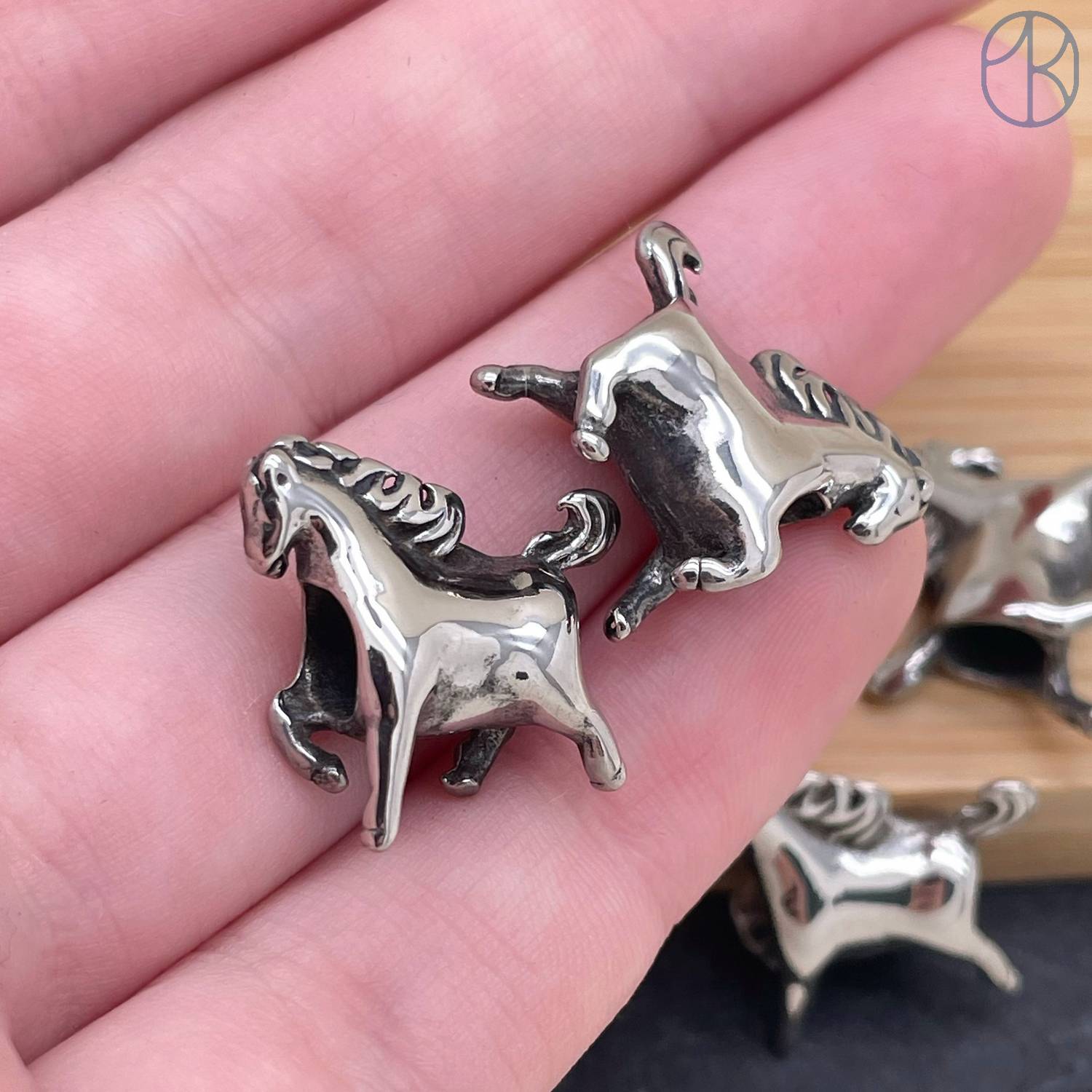 Бусина сталь лошадь, цвет серебро 14 мм