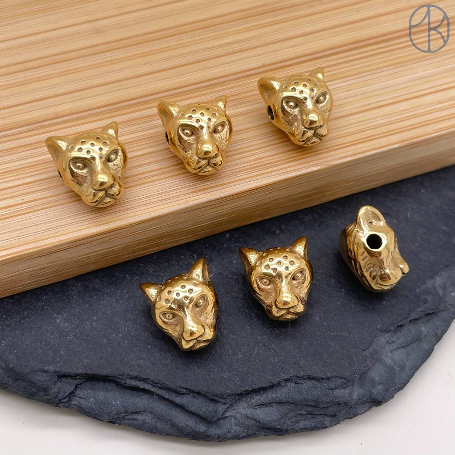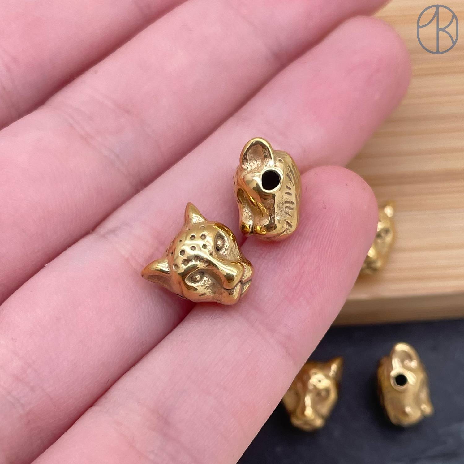 Бусина сталь пантера, цвет золото 10 мм