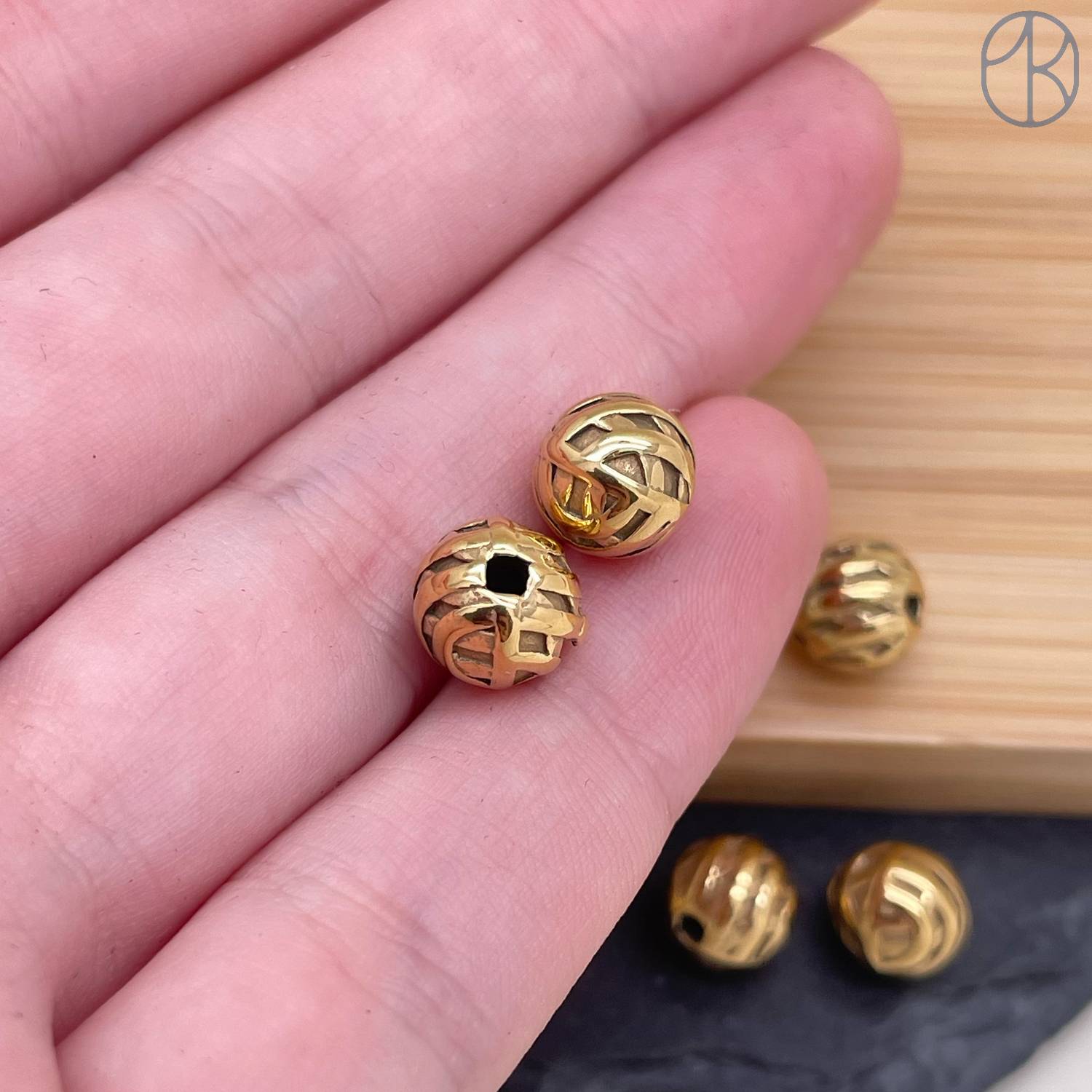 Бусина сталь шар, цвет золото 8 мм