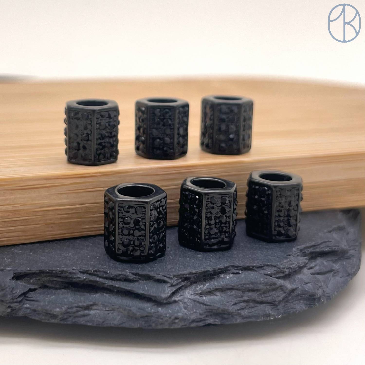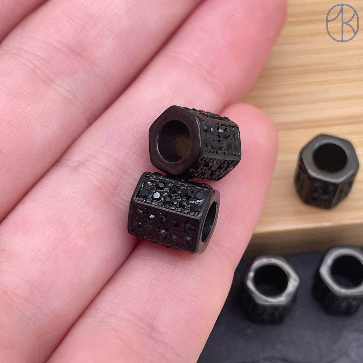 Бусина сталь цилиндр черные цирконы, цвет черный 9х9 мм